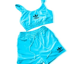adidas crop top and shorts set