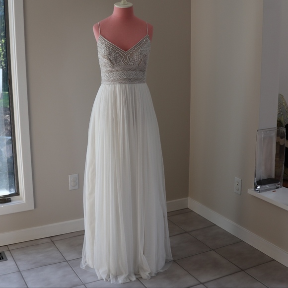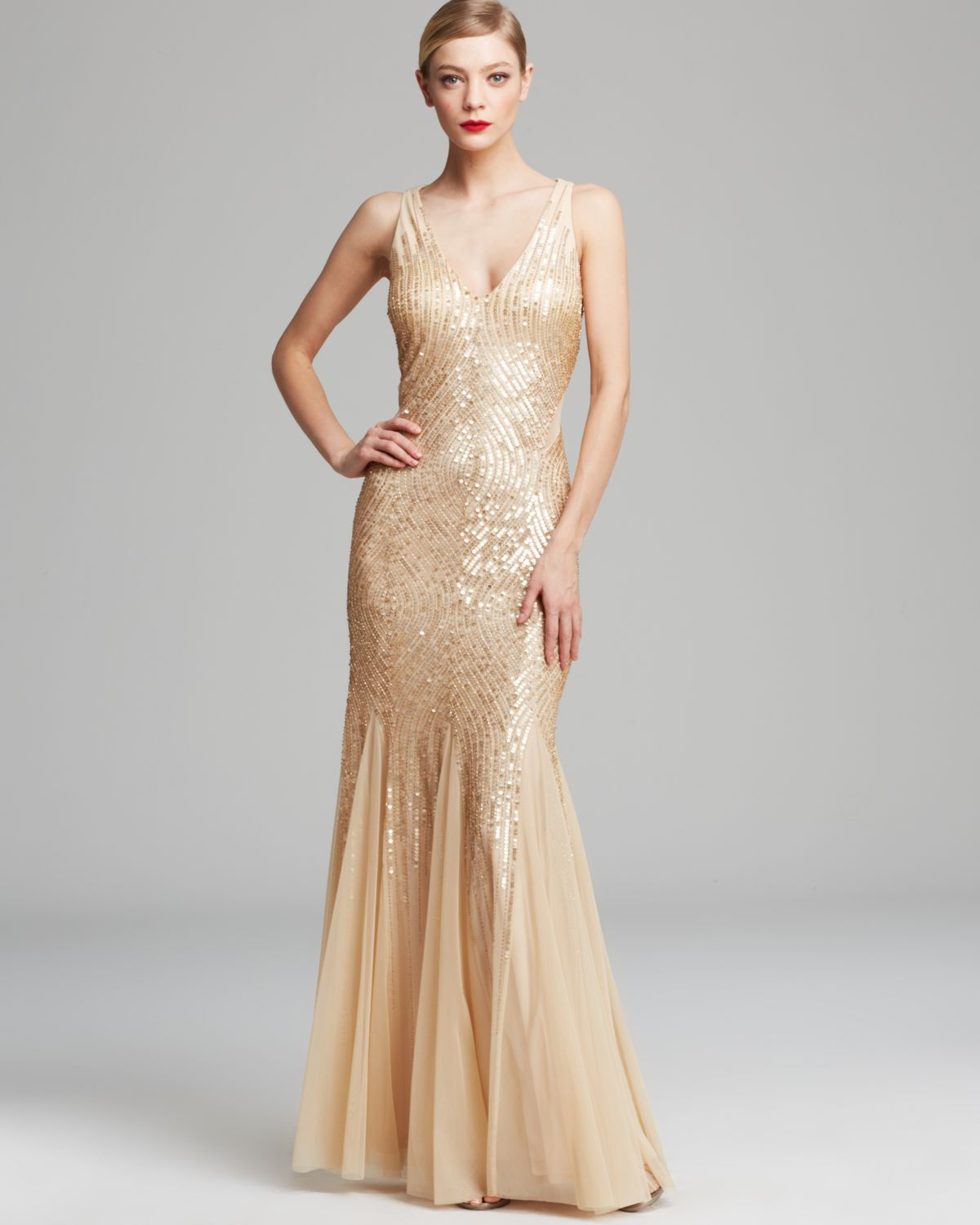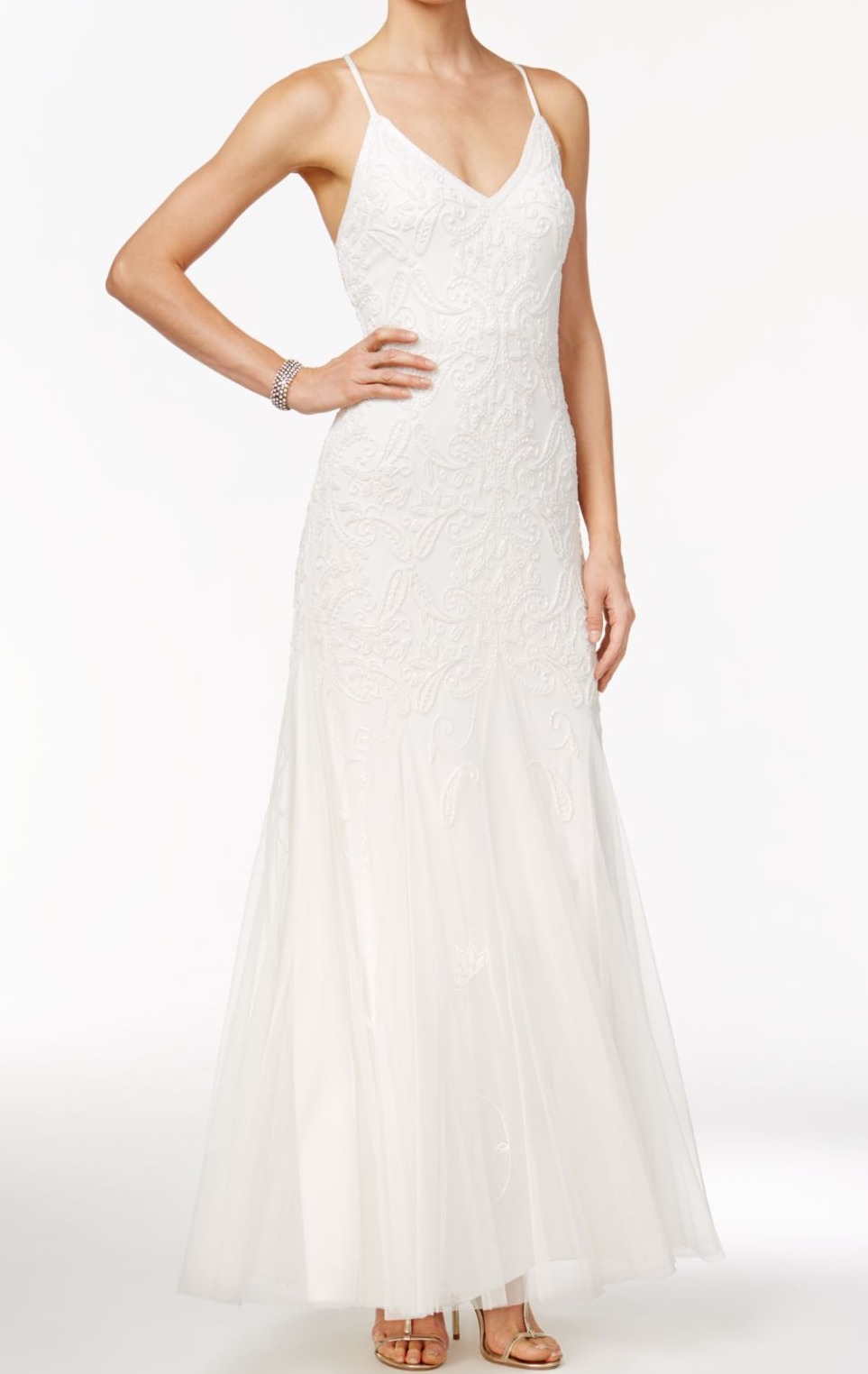 adrianna papell embellished tulle gown
