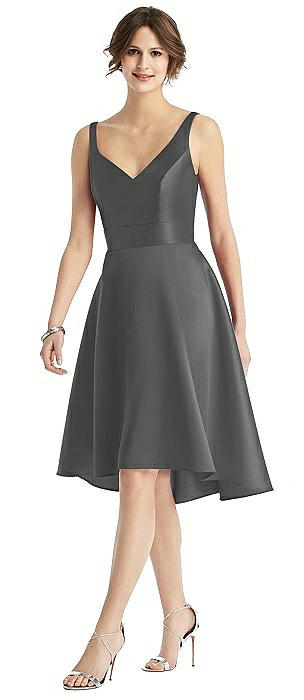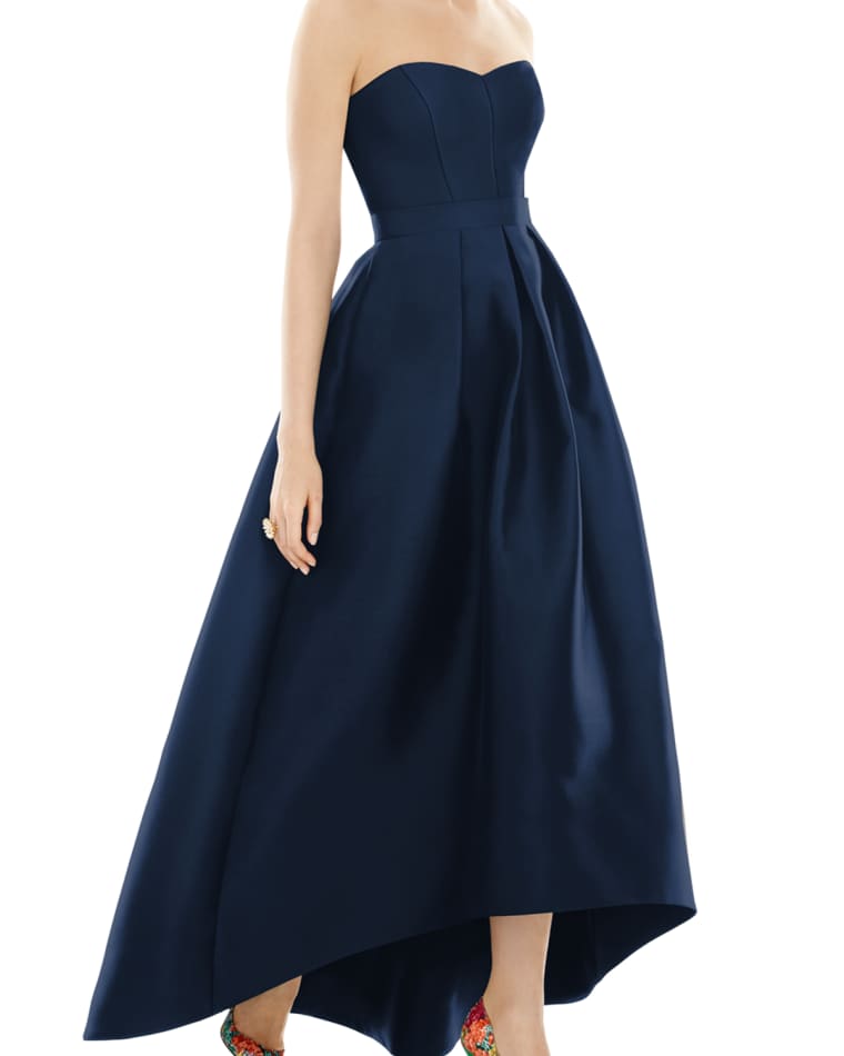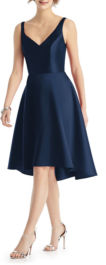 alfred sung high low satin twill cocktail dress