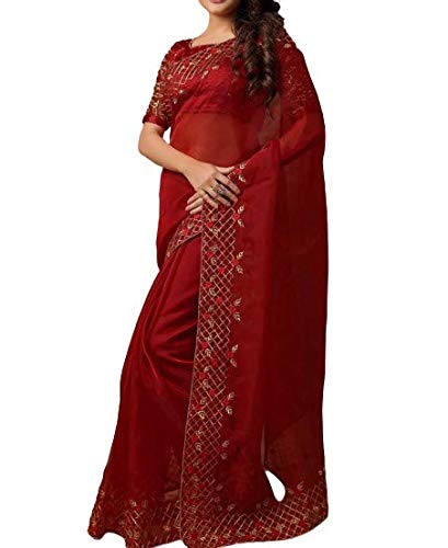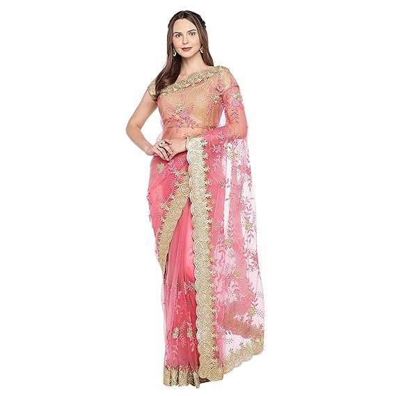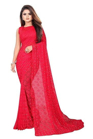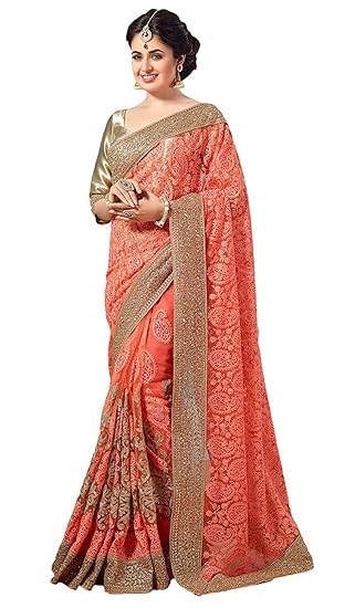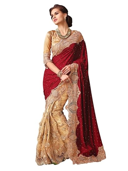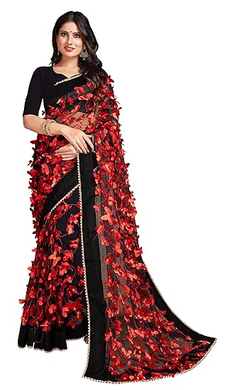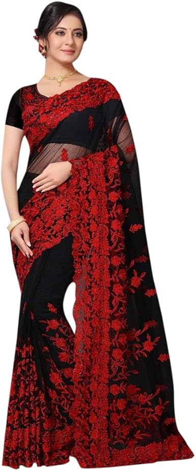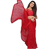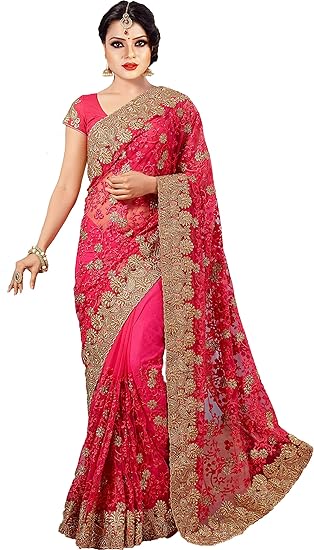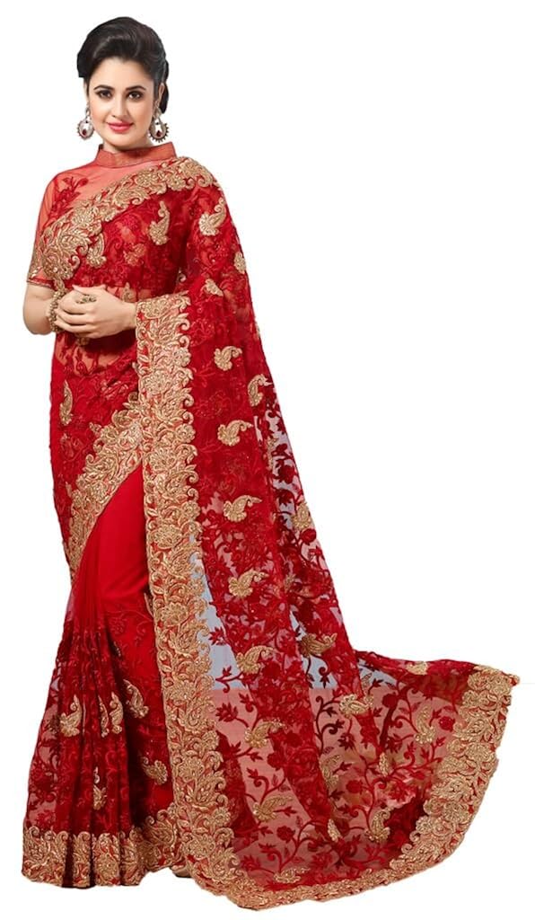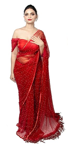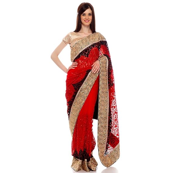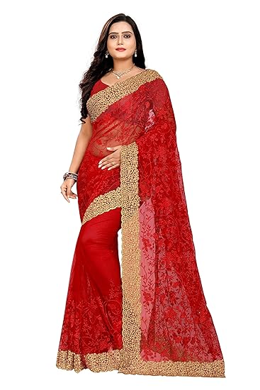 amazon red net saree