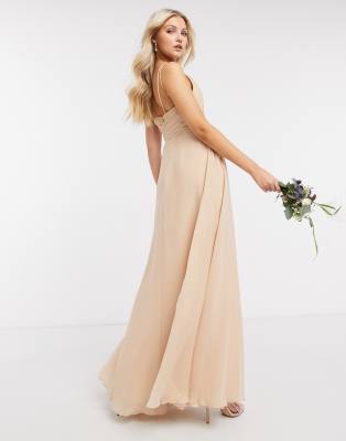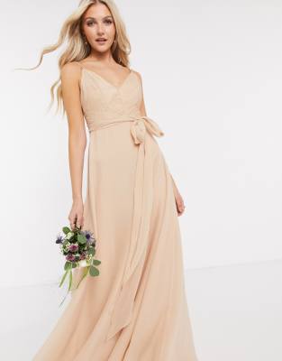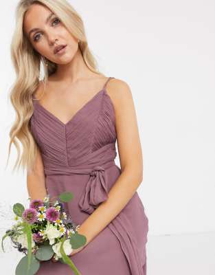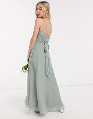 asos design bridesmaid cami maxi dress with ruched bodice and tie waist