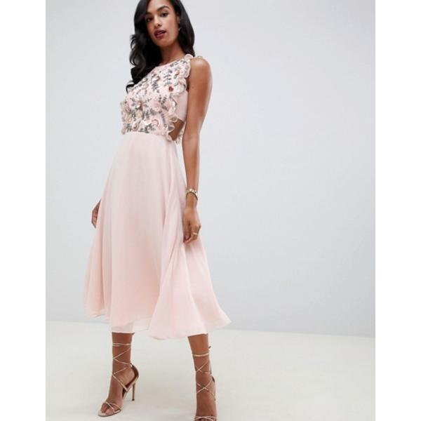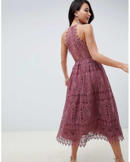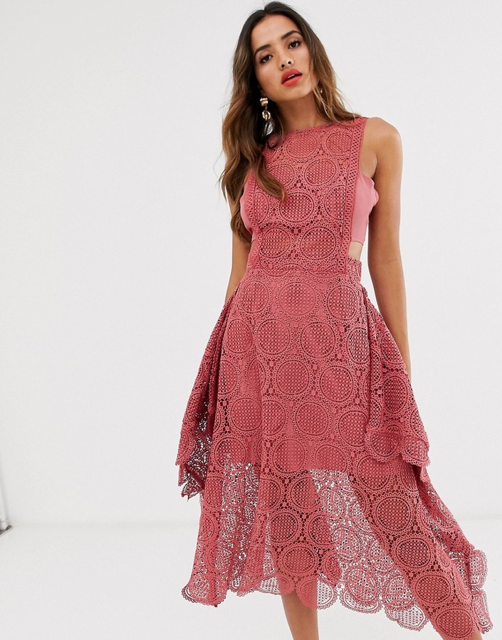 asos design lace midi dress with pinny bodice