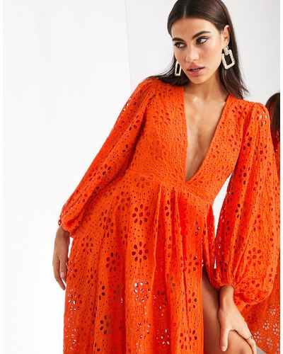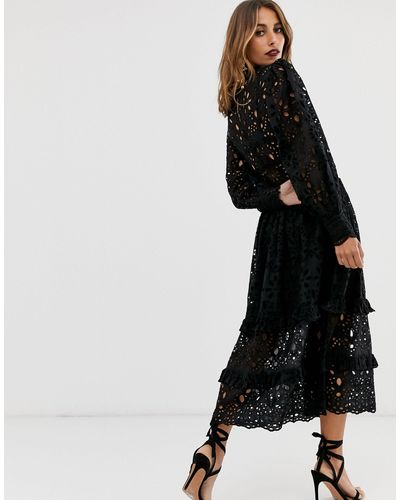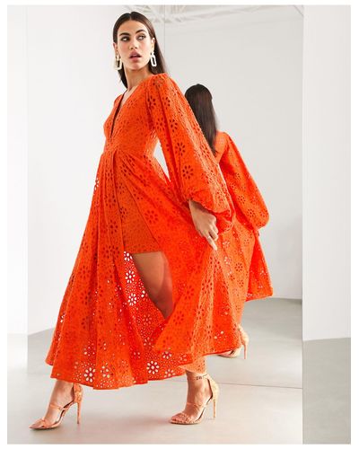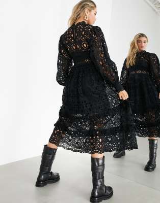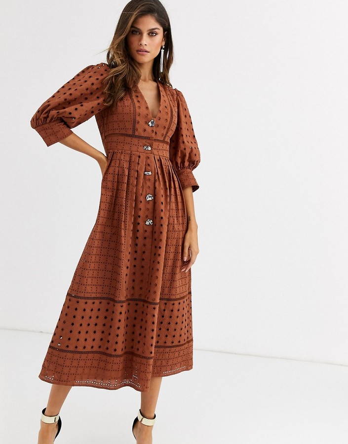 asos edition broderie midi dress with balloon sleeves