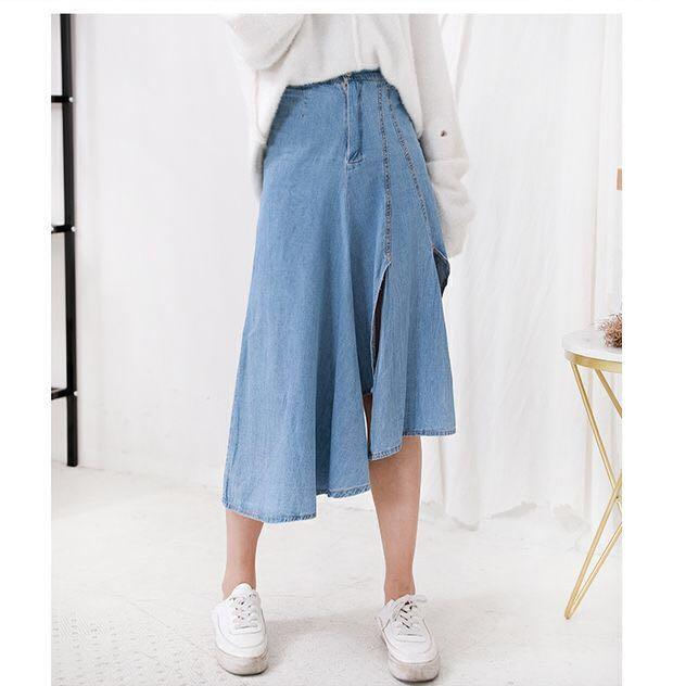 asymmetrical skirt denim