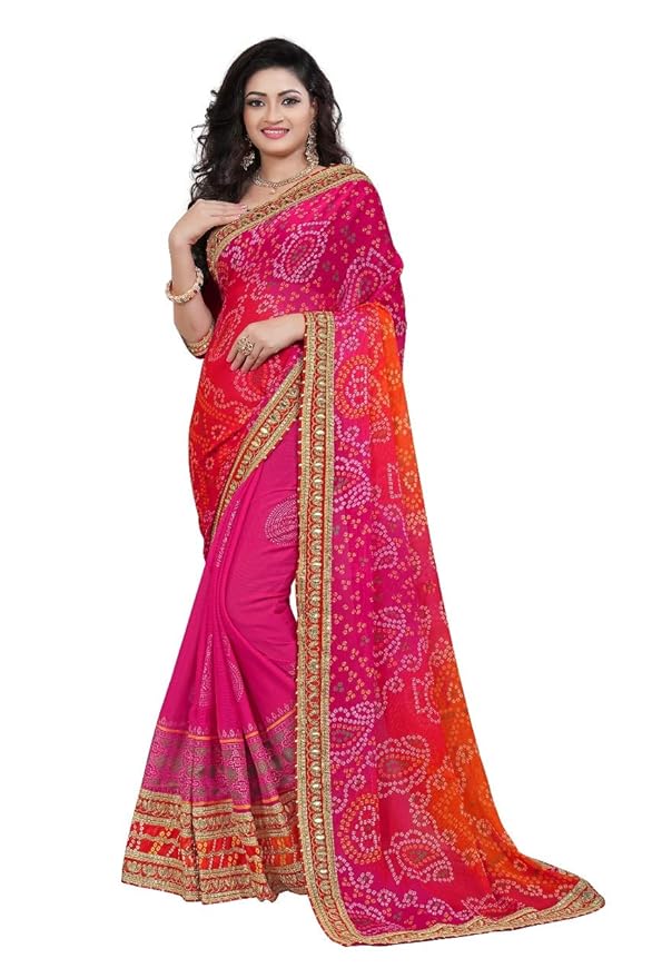 bandhani sarees with gota patti work