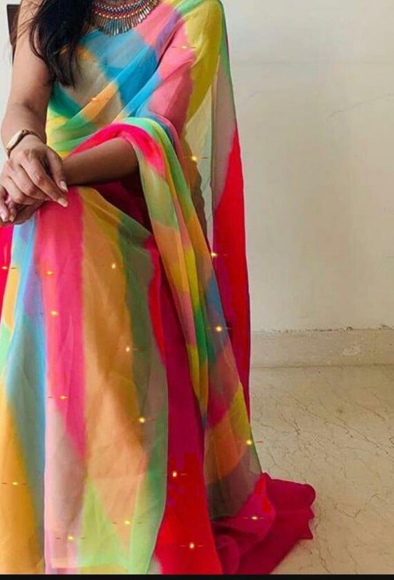 bandhani sarees with mirror work