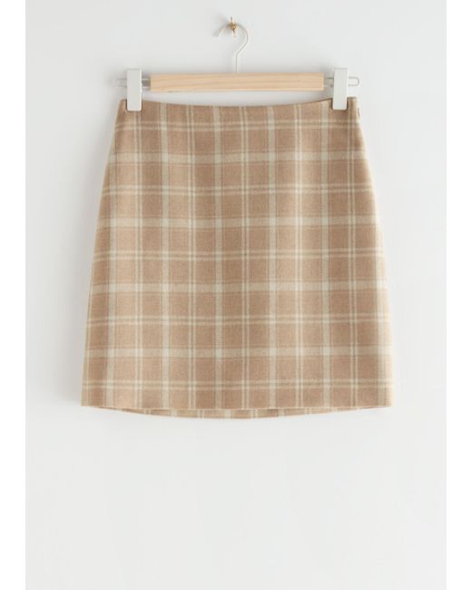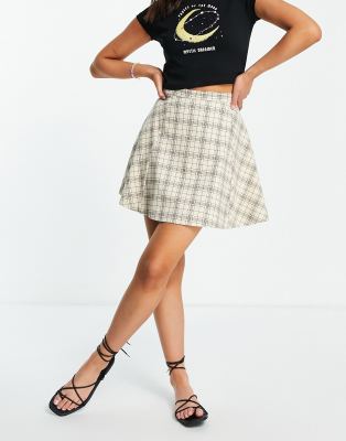 beige check mini skirt