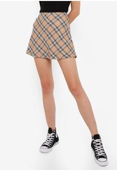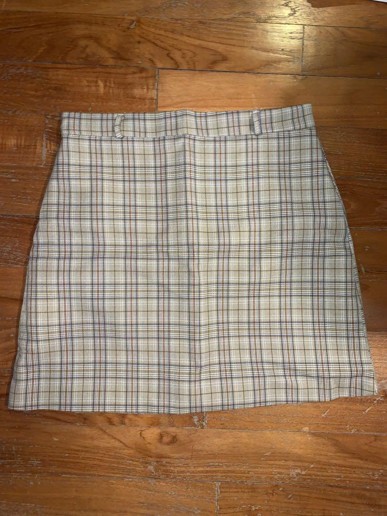 beige checked skirt