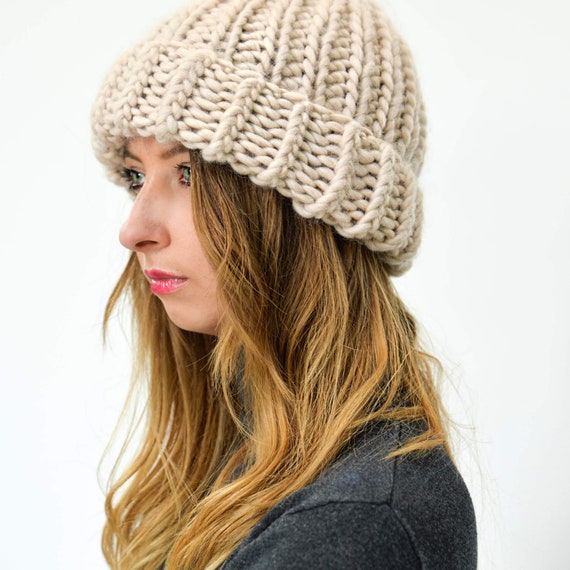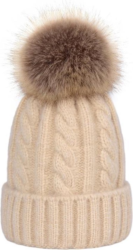 beige gebreide muts