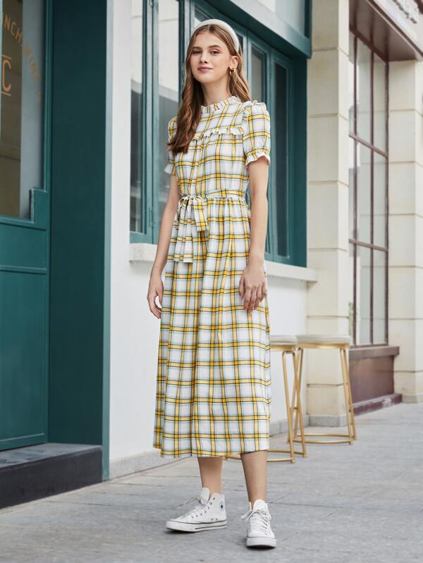 belted plaid dress