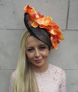 black and orange fascinator