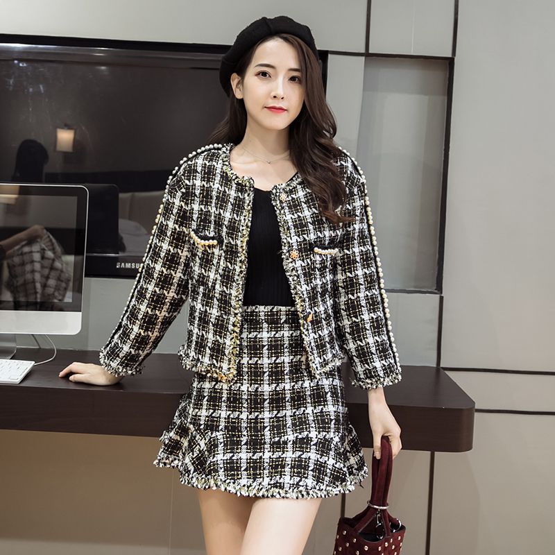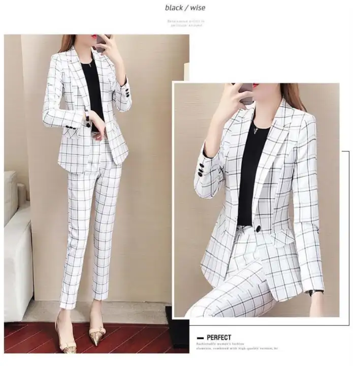 black and white plaid suit womens