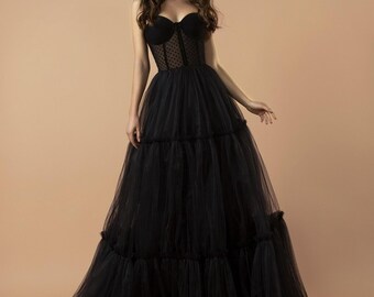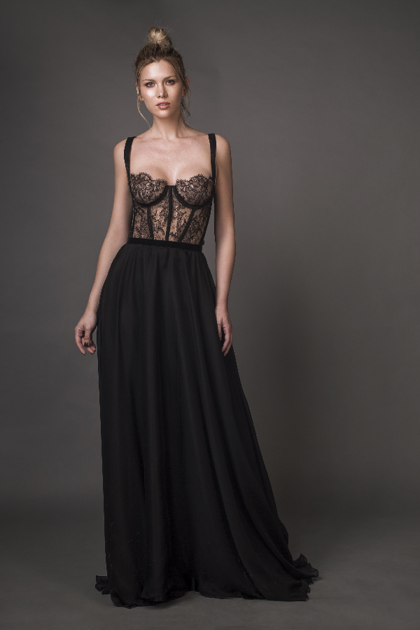 black bustier gown