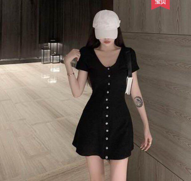 black button down mini dress