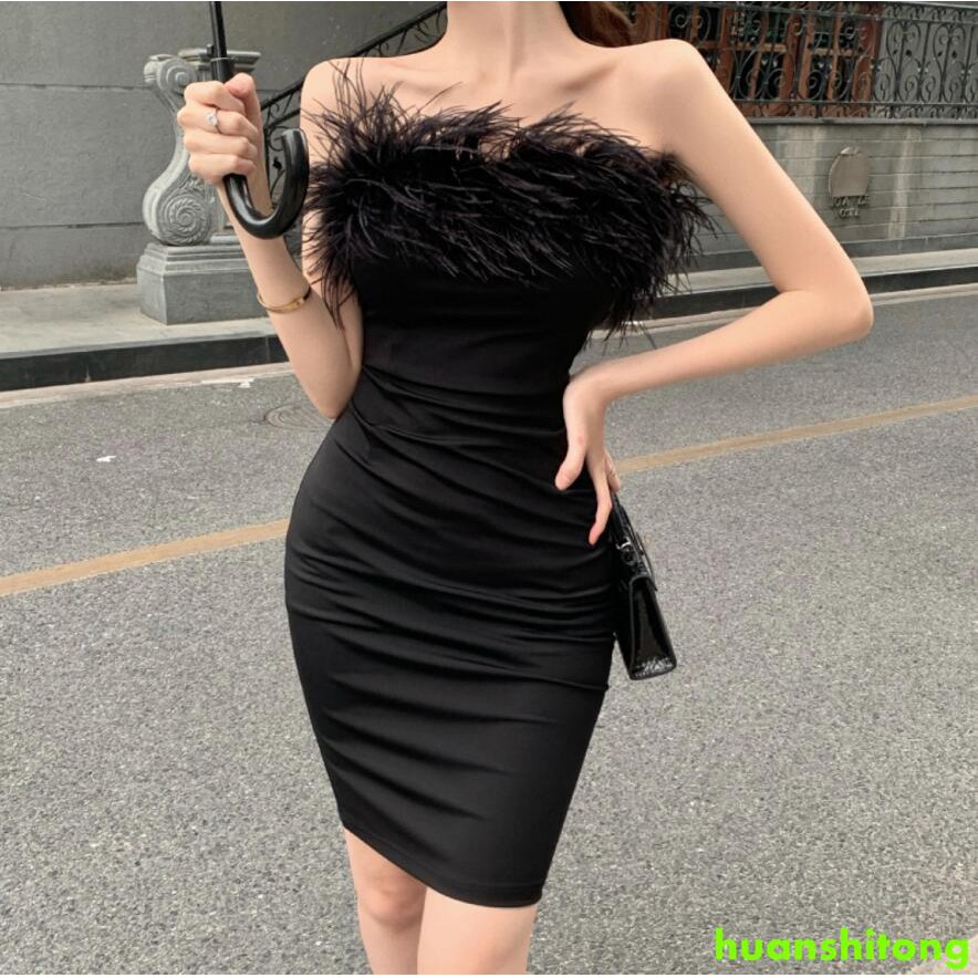 black dress with fur