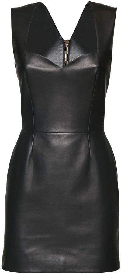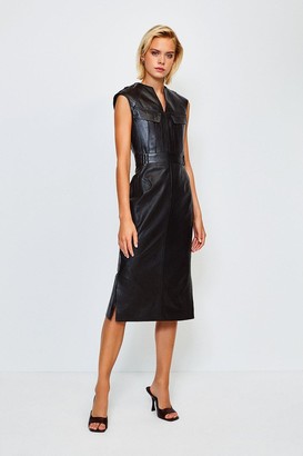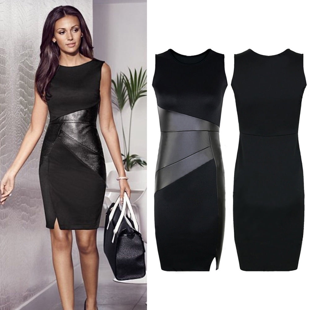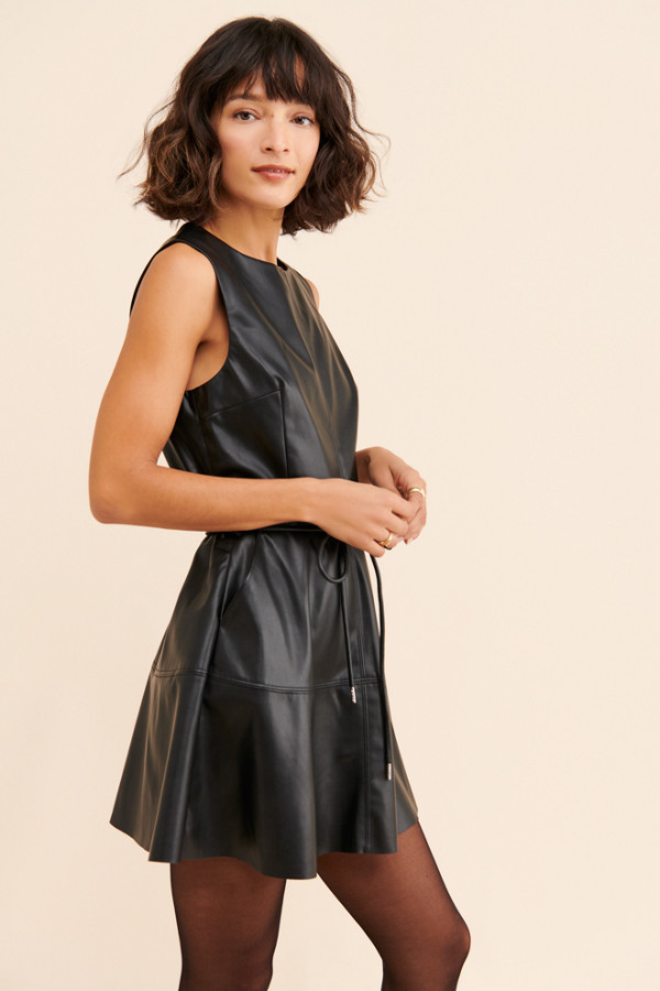 black dress with leather detail