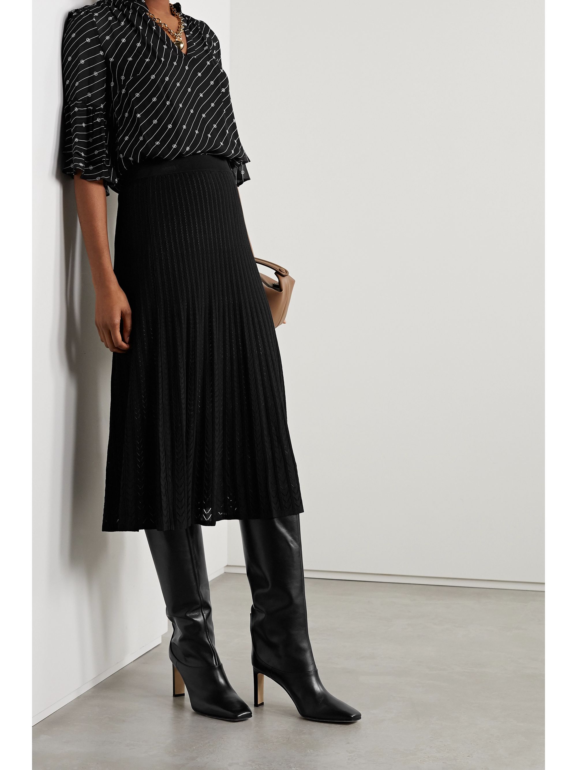 black floaty midi skirt