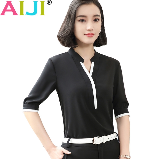 black formal chiffon blouses