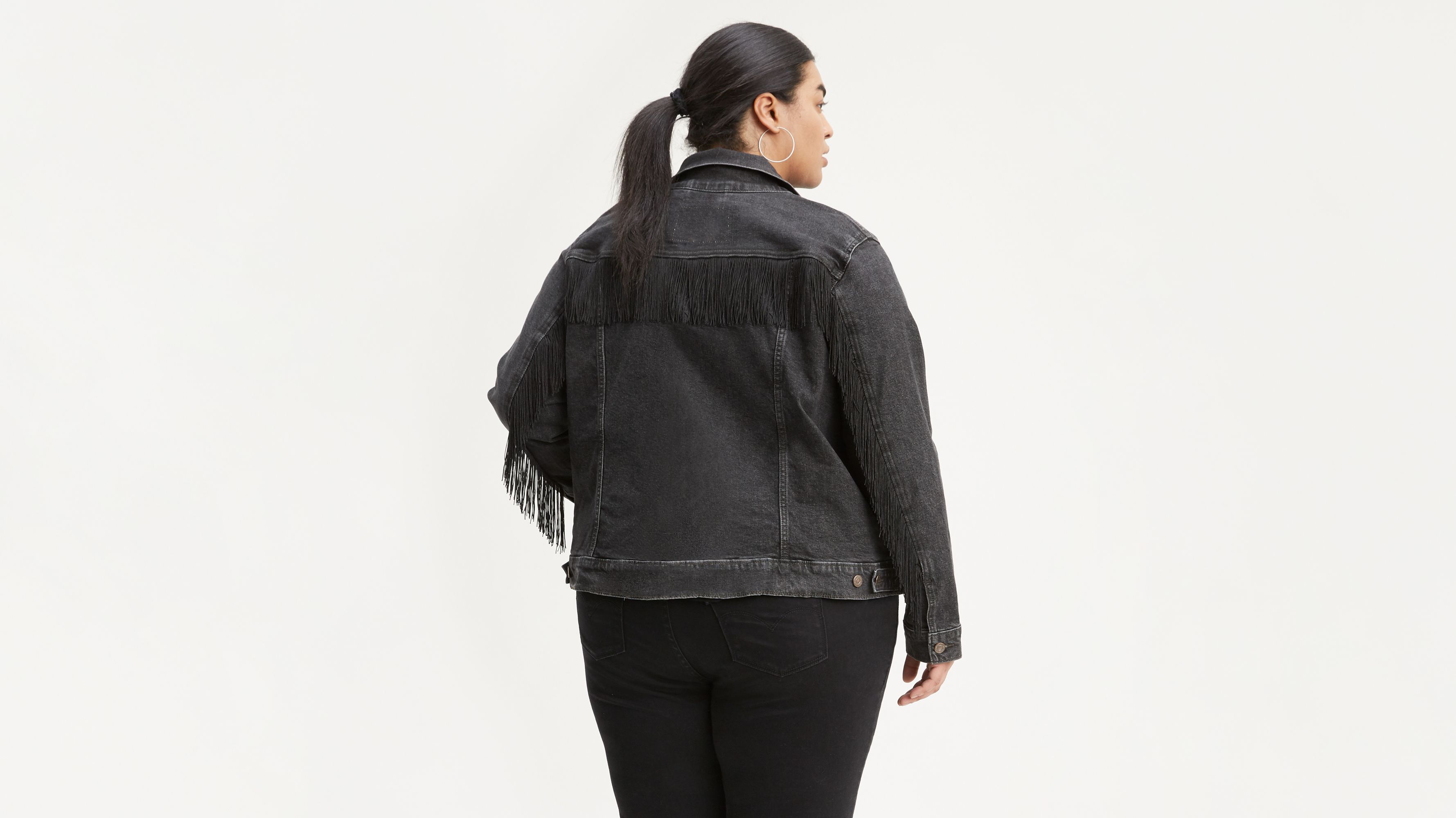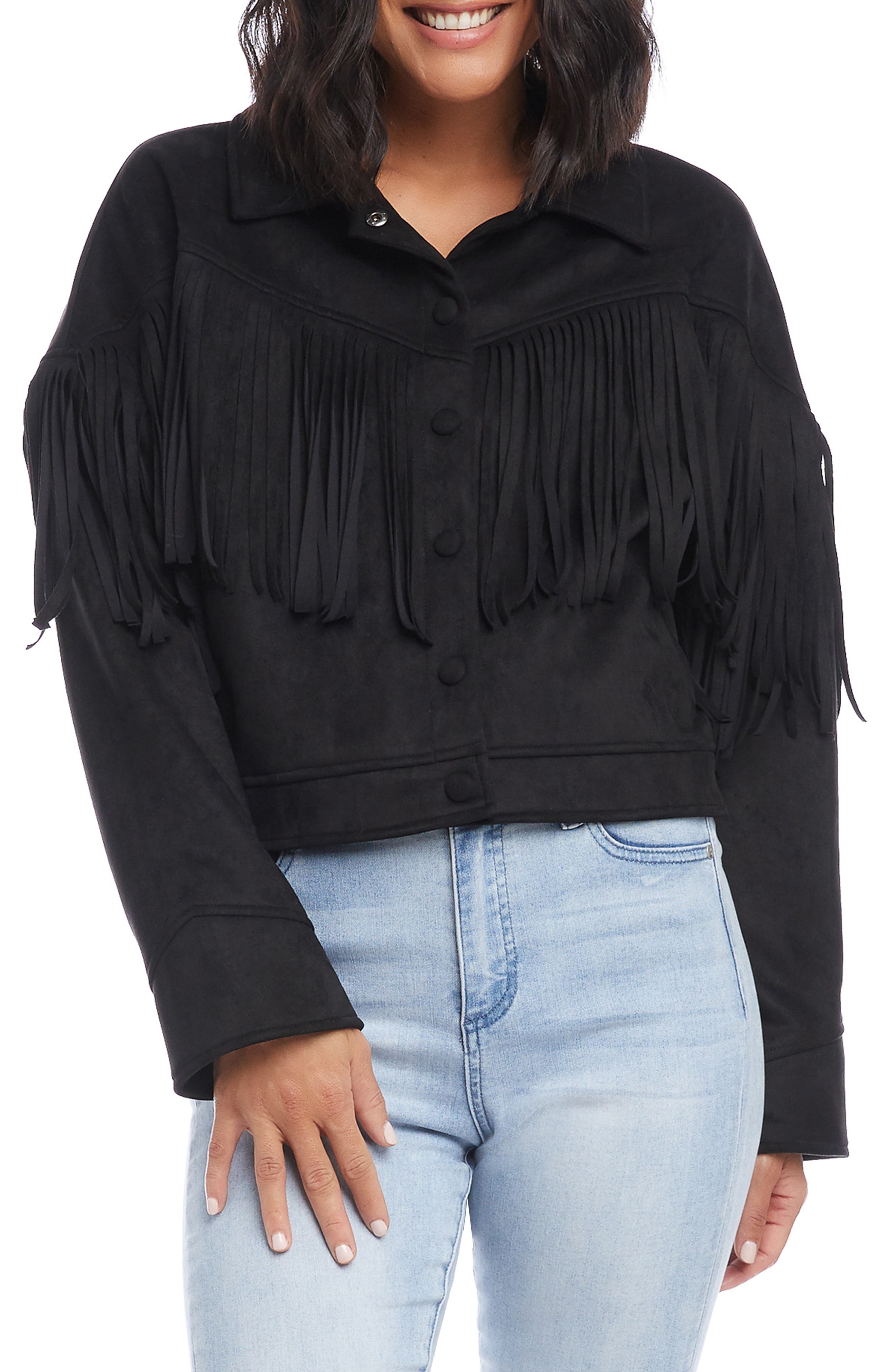 black fringe jacket plus size