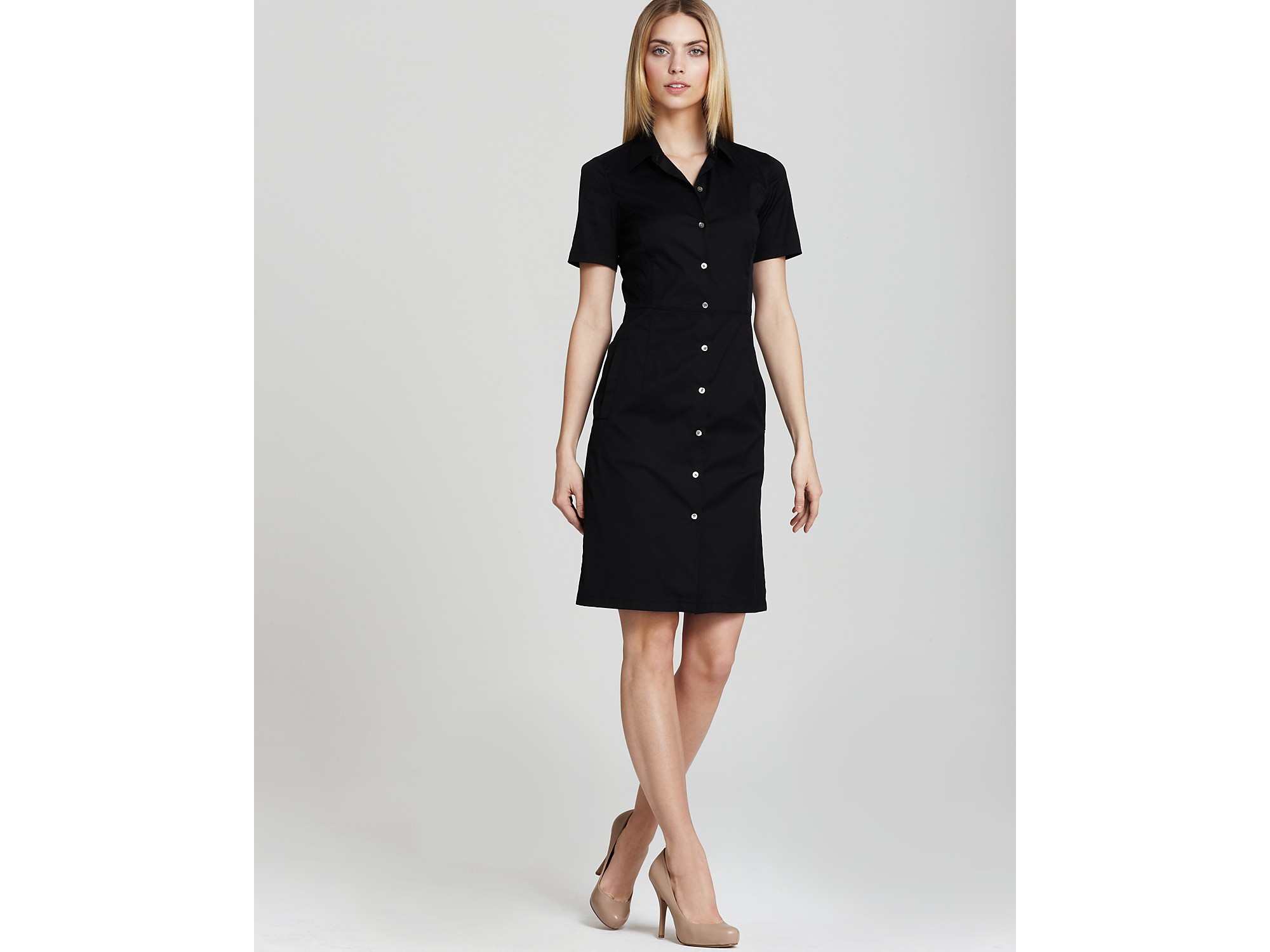 black front button dress