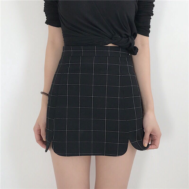 black grid skirt