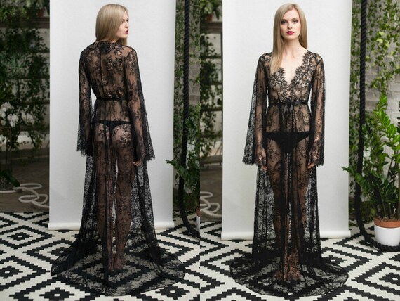 black lace long robe