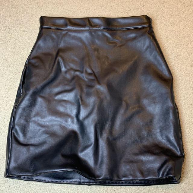black leather mini skirt