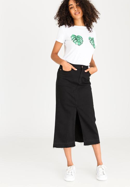 black maxi denim skirt