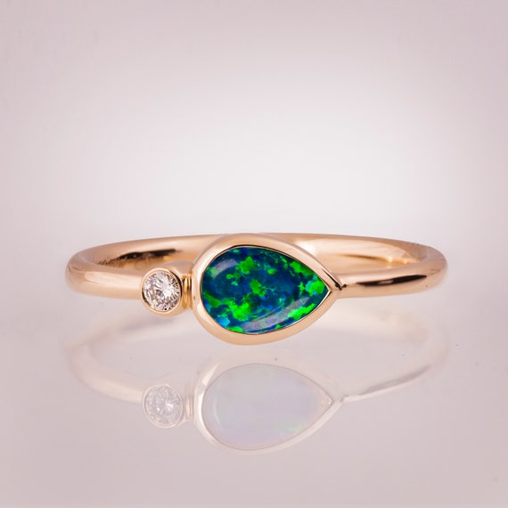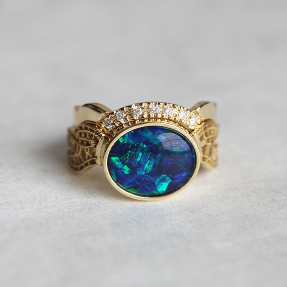 black opal wedding ring set