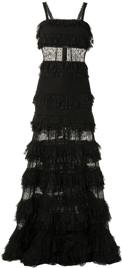 black ruffle gown