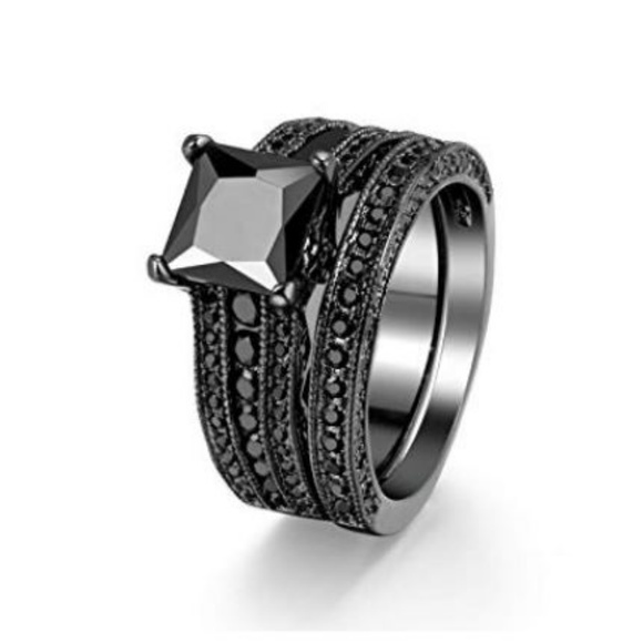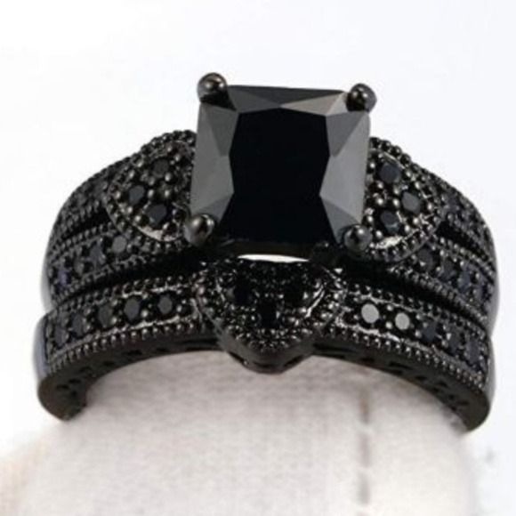 black sapphire wedding set
