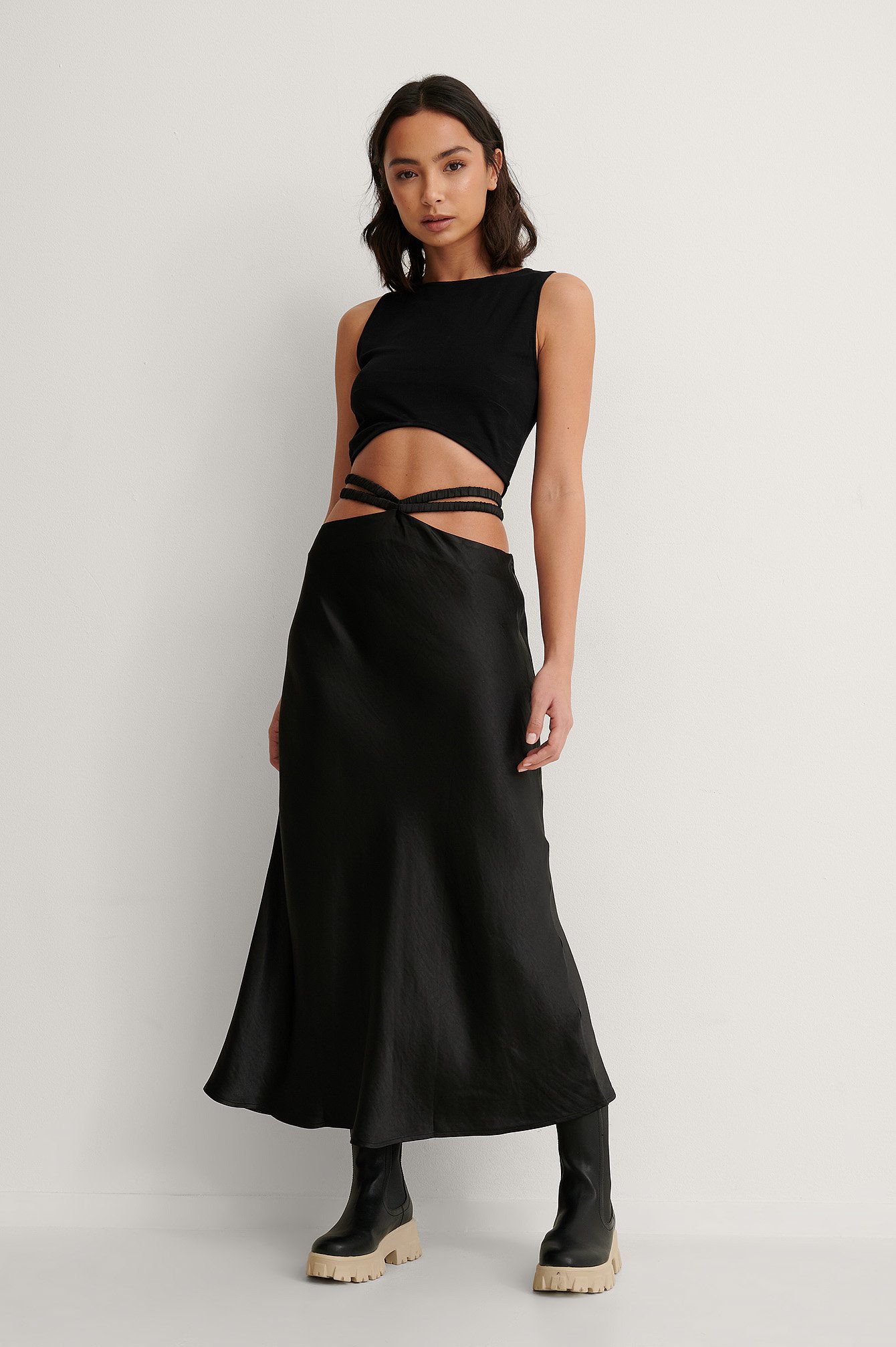 black satin skirt