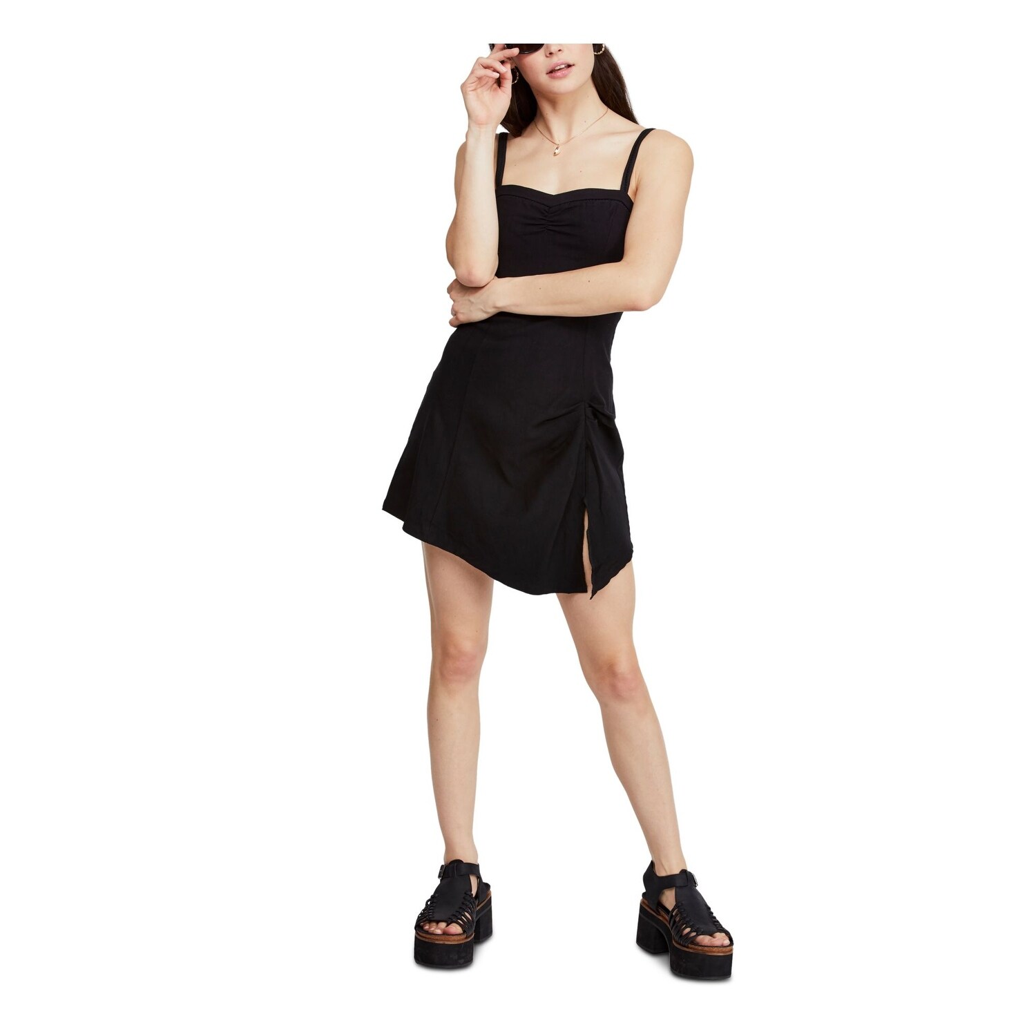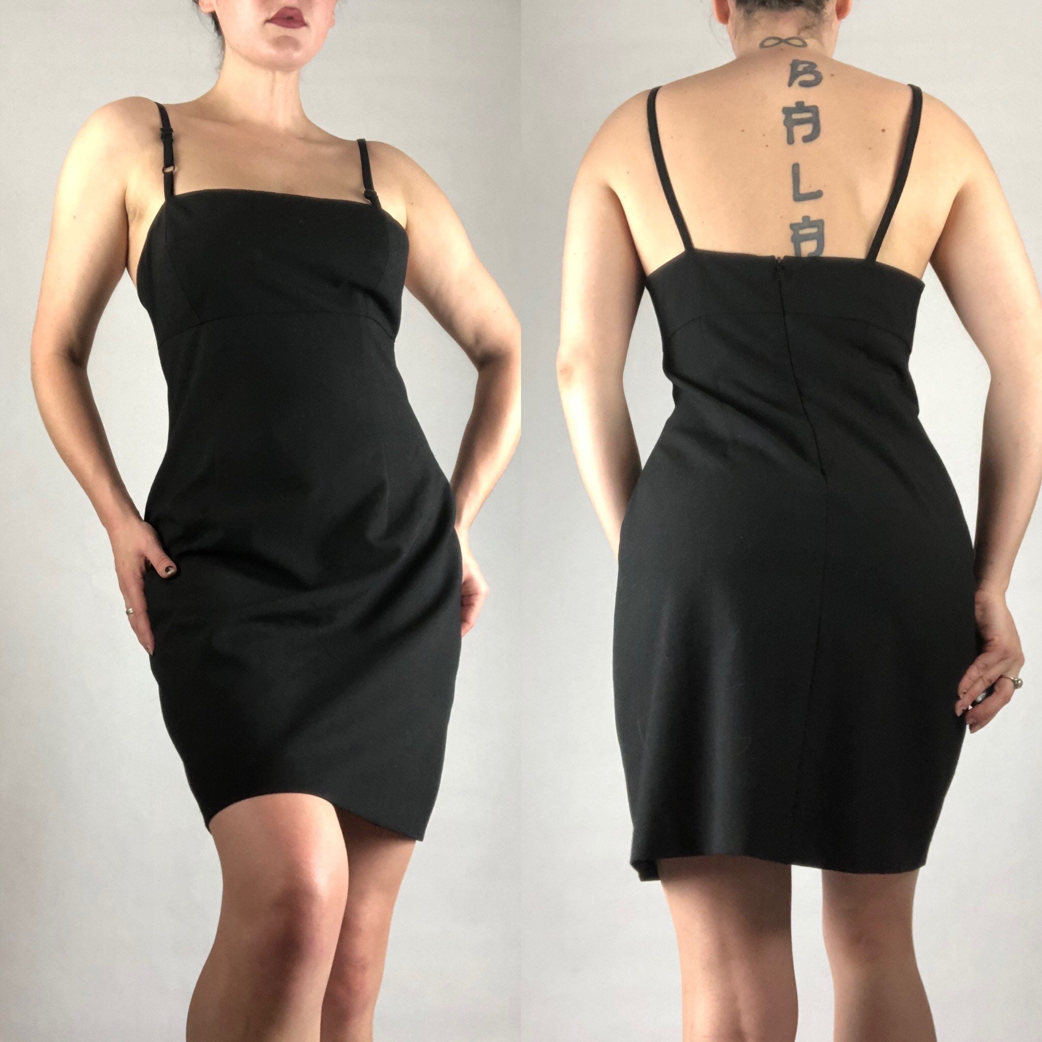 black spaghetti strap mini dress