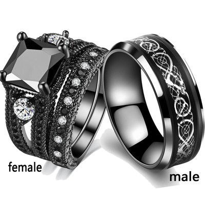 black titanium wedding ring sets