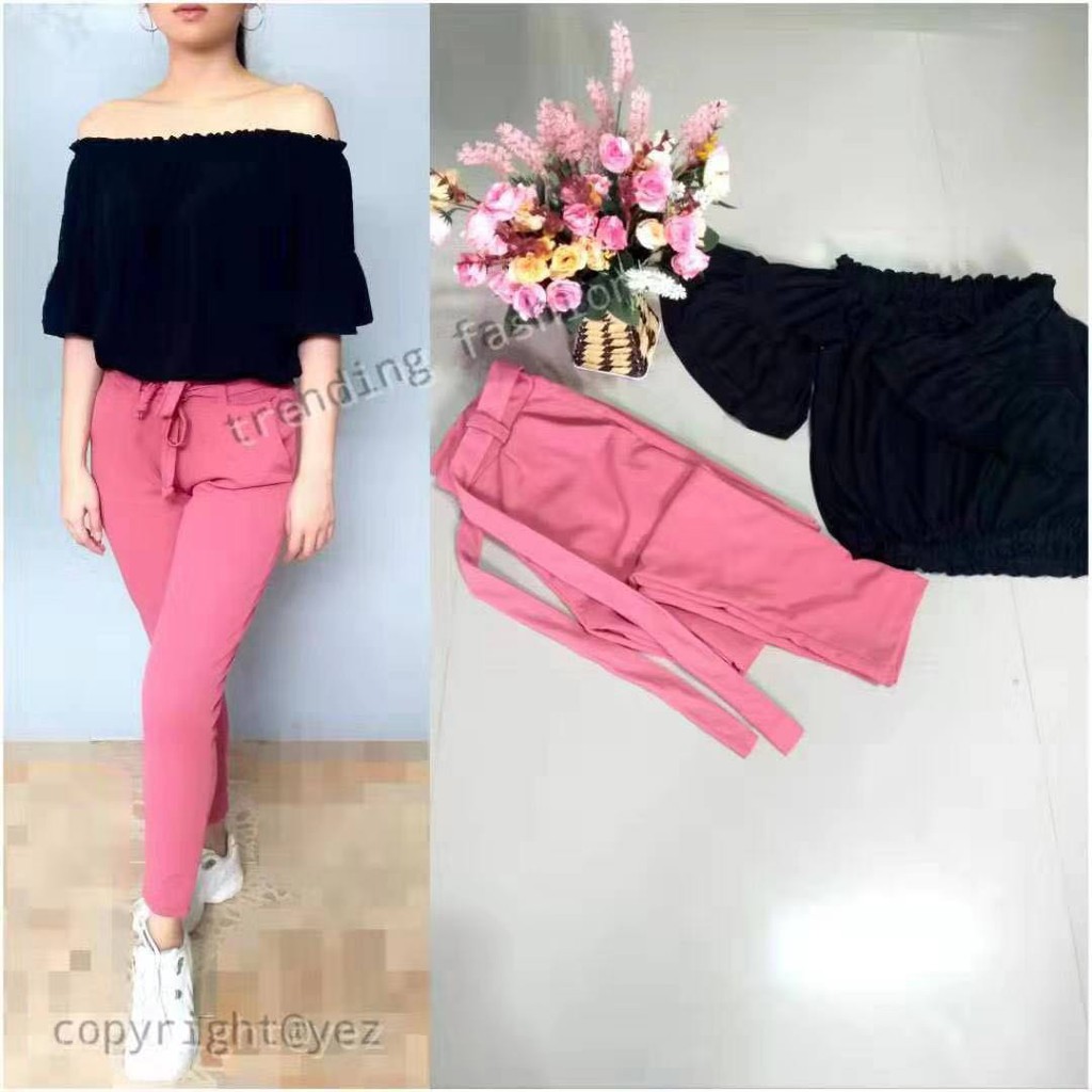 black top pink pants