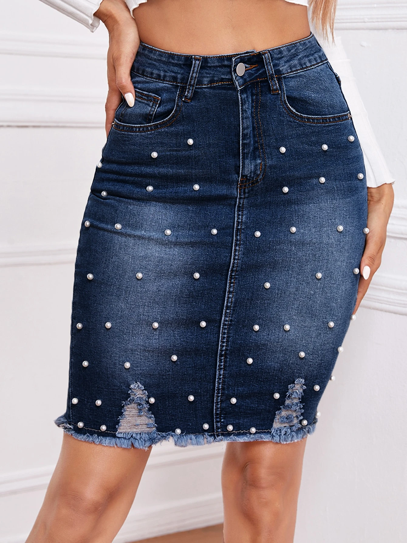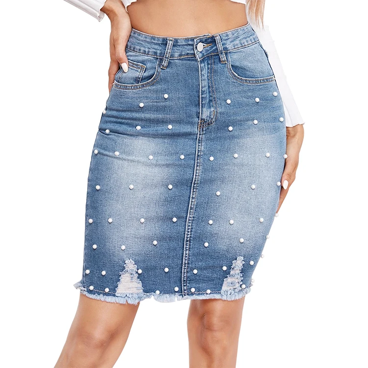 bleached denim skirt