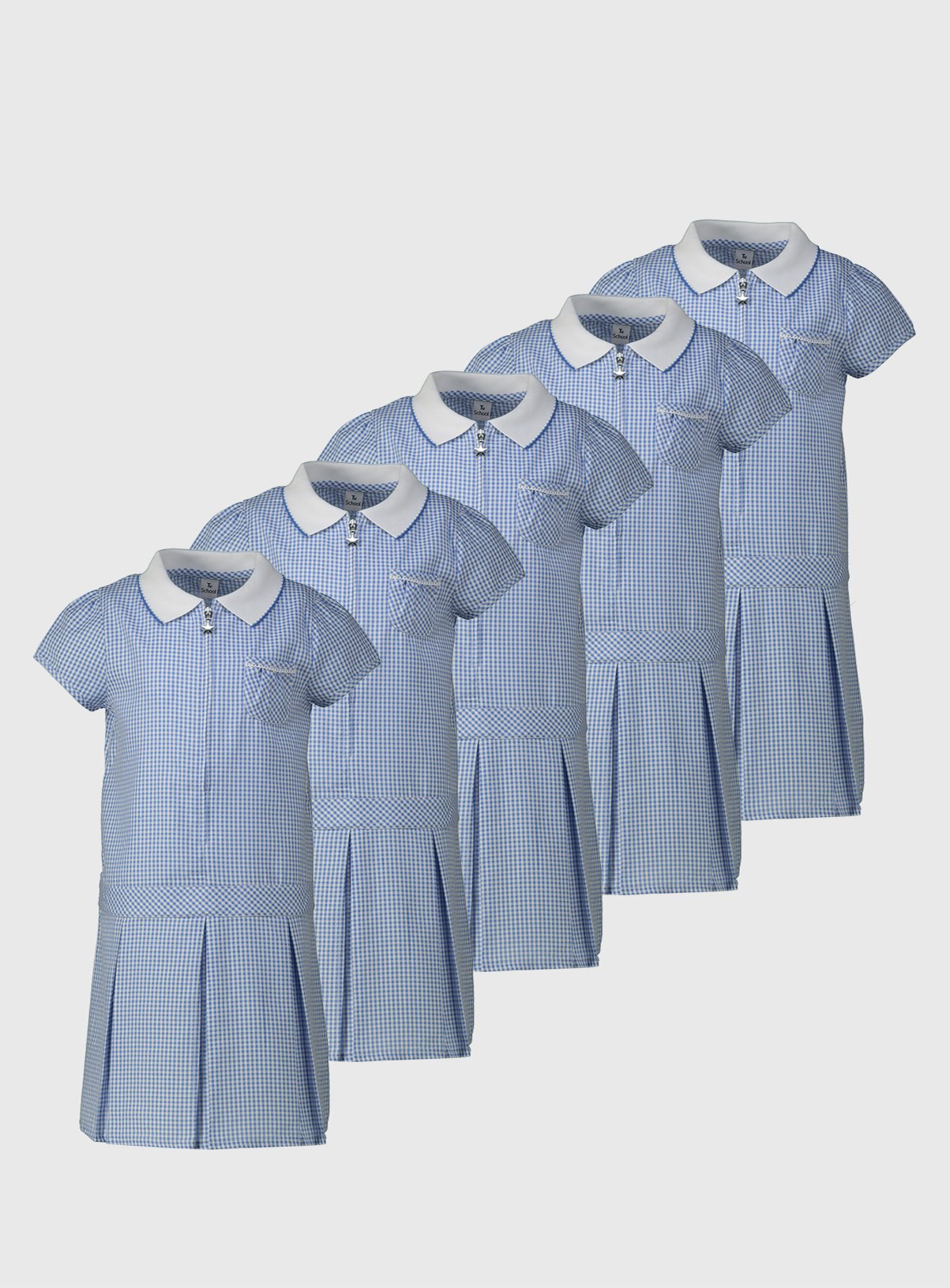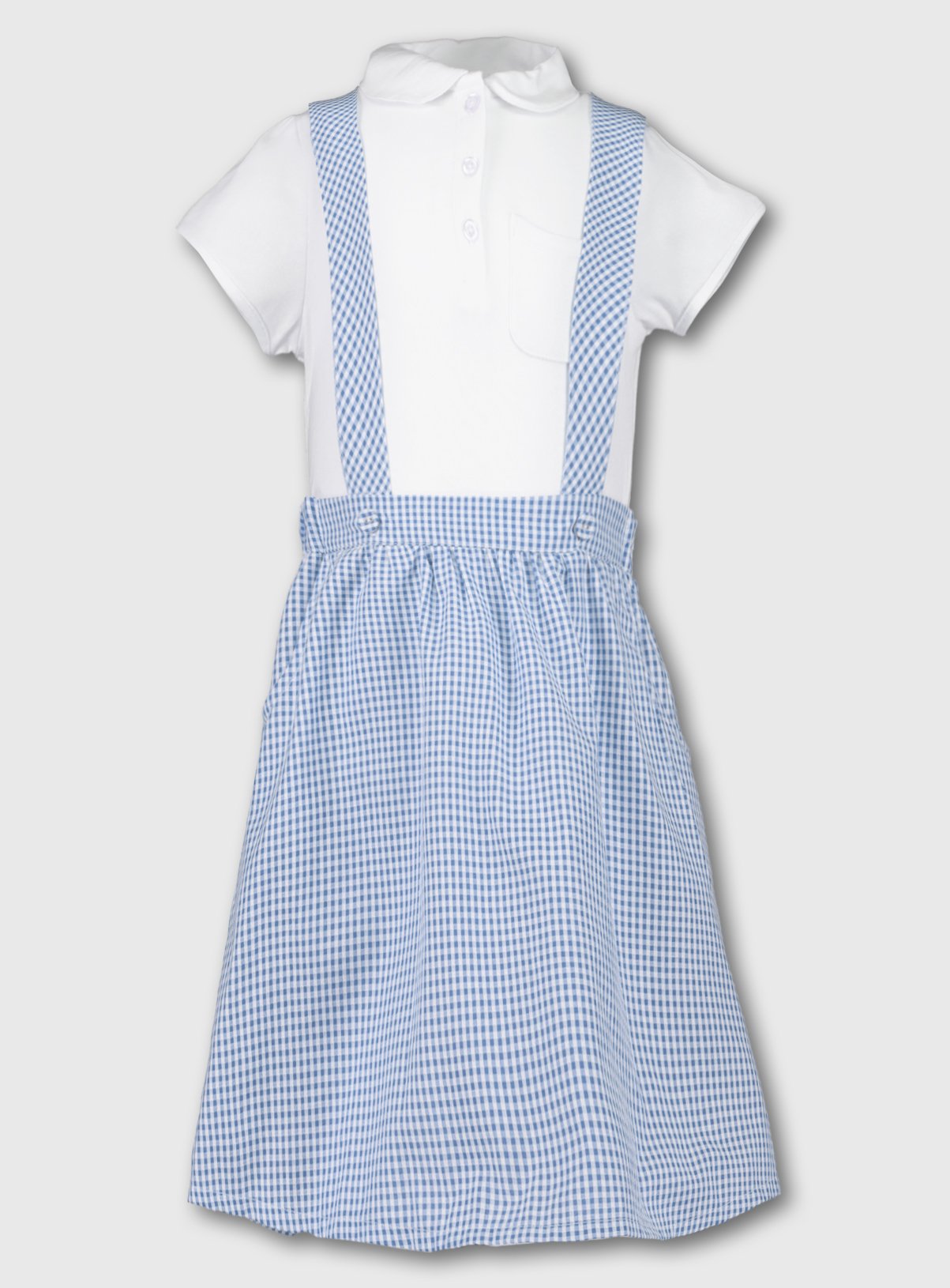 blue and white checked school dress