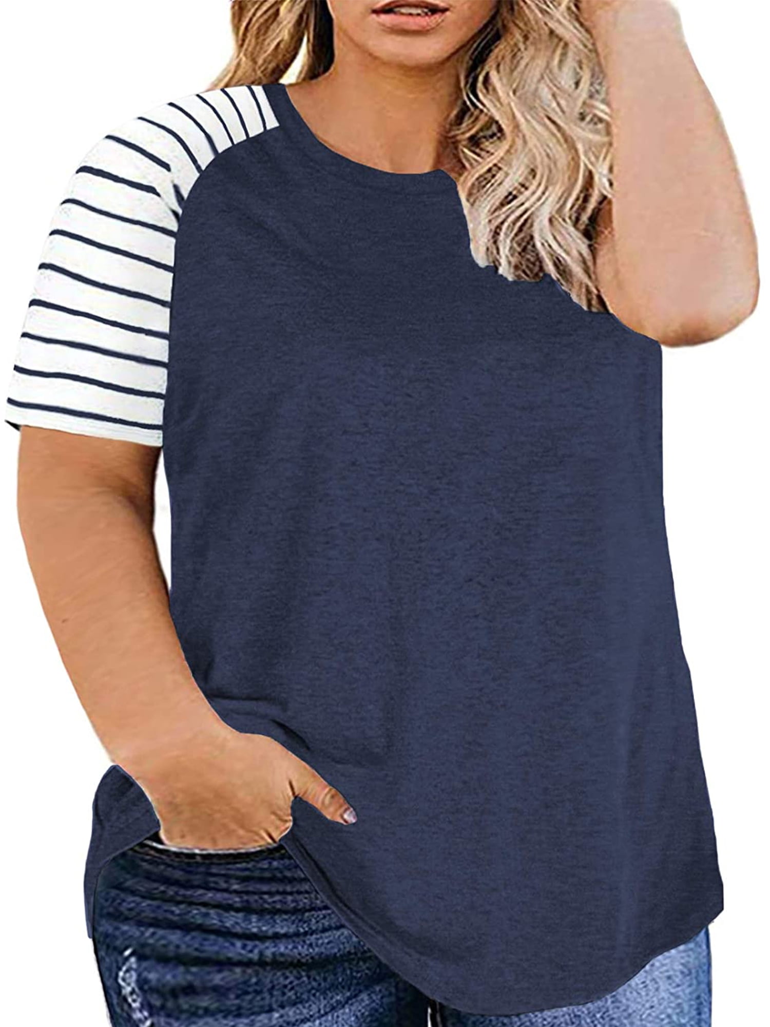 blue and white plus size tops