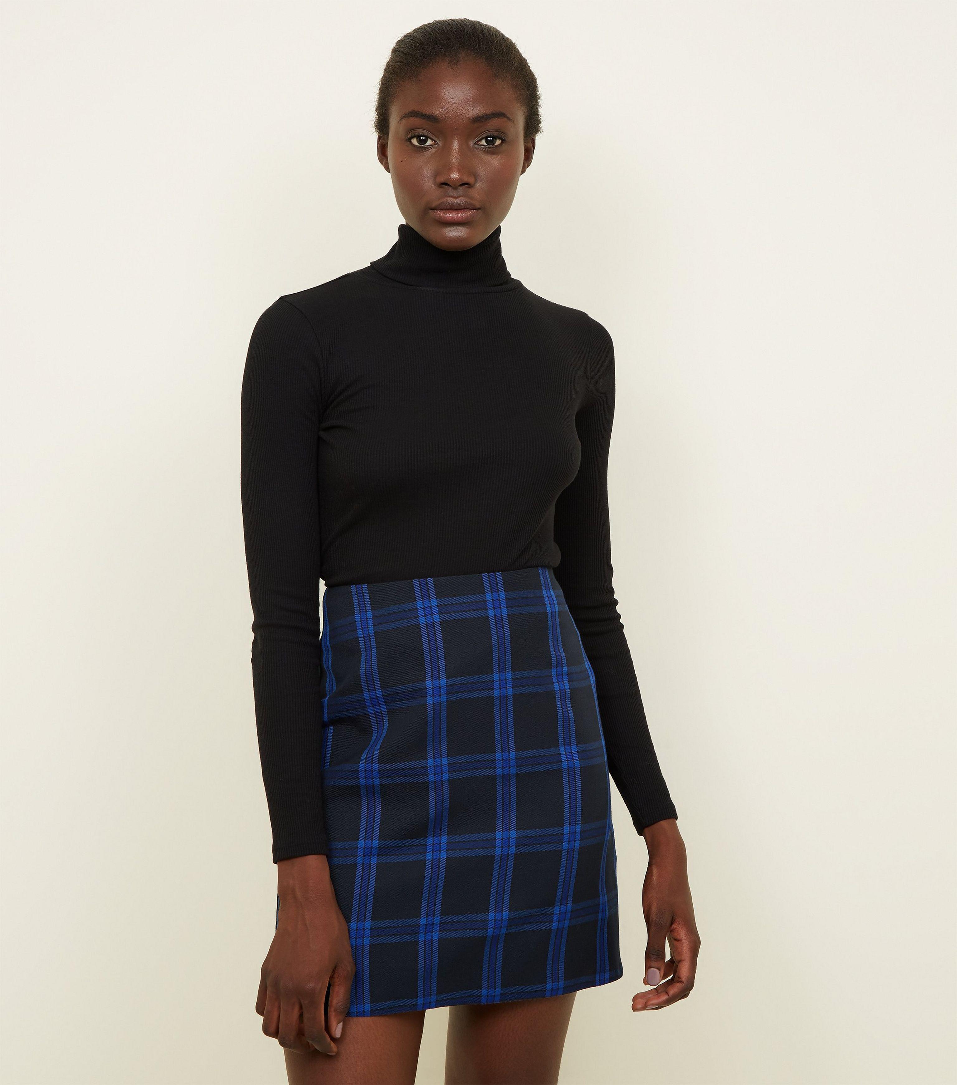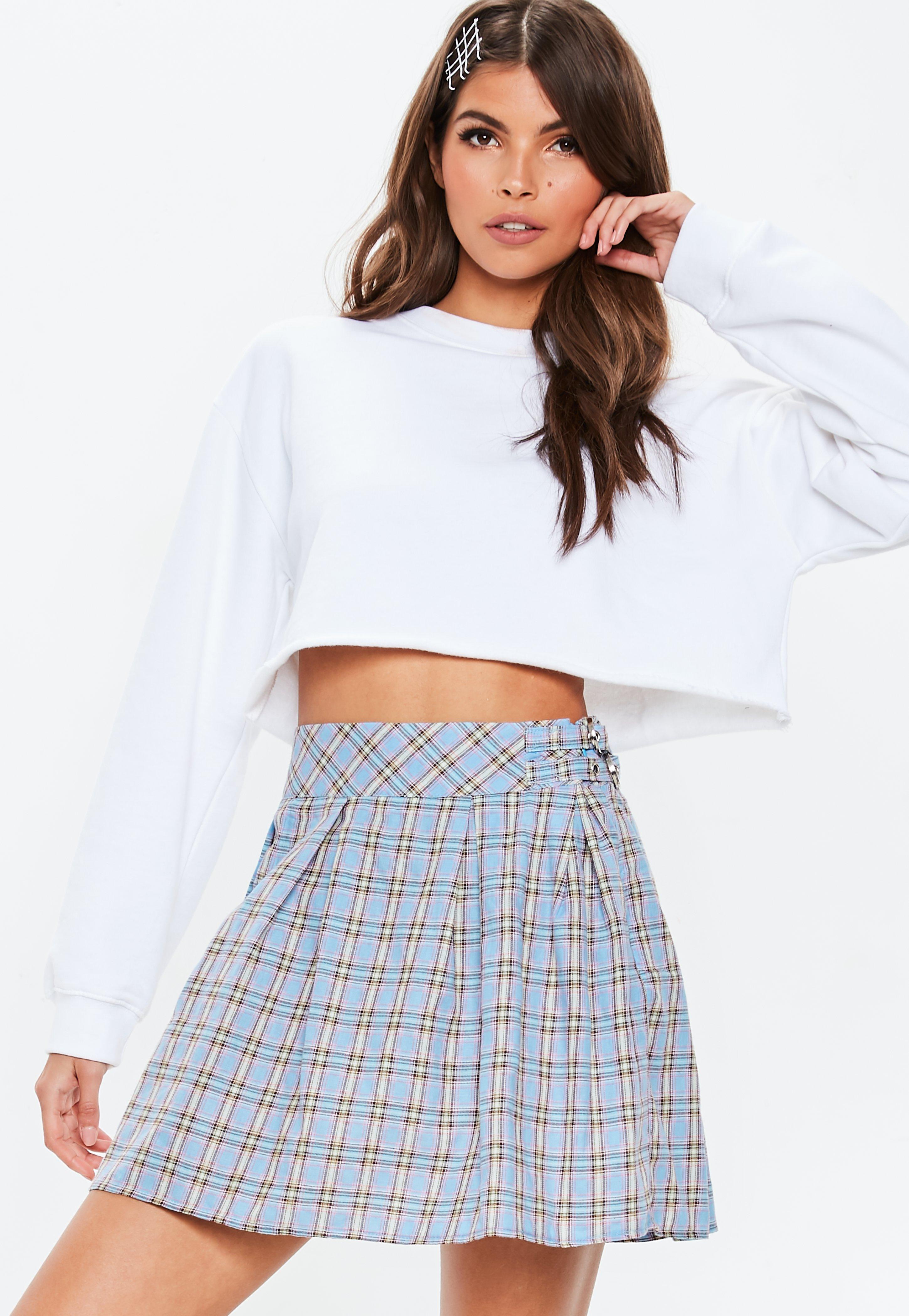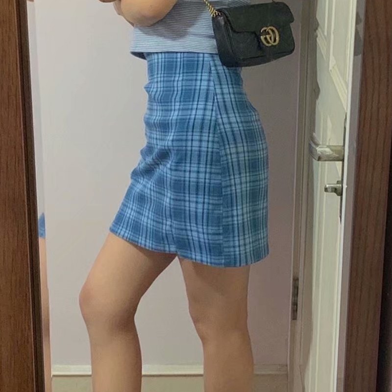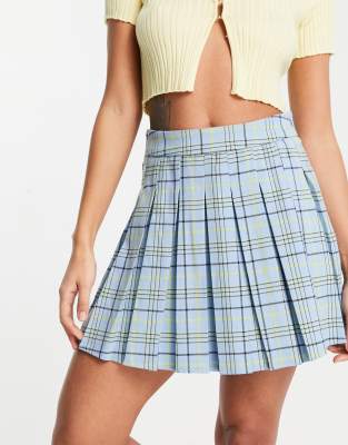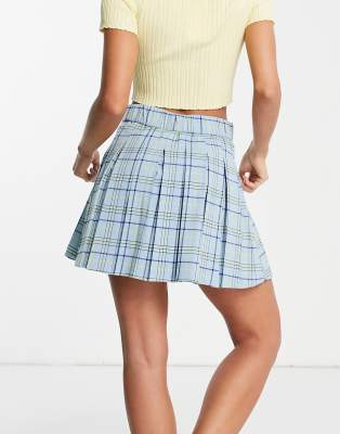 blue check mini skirt