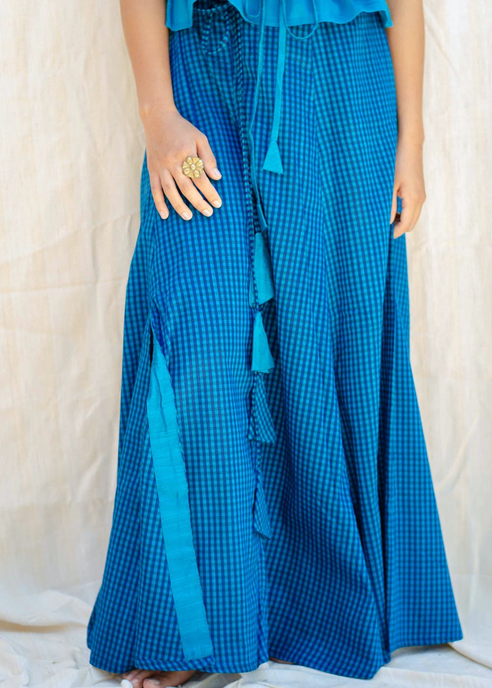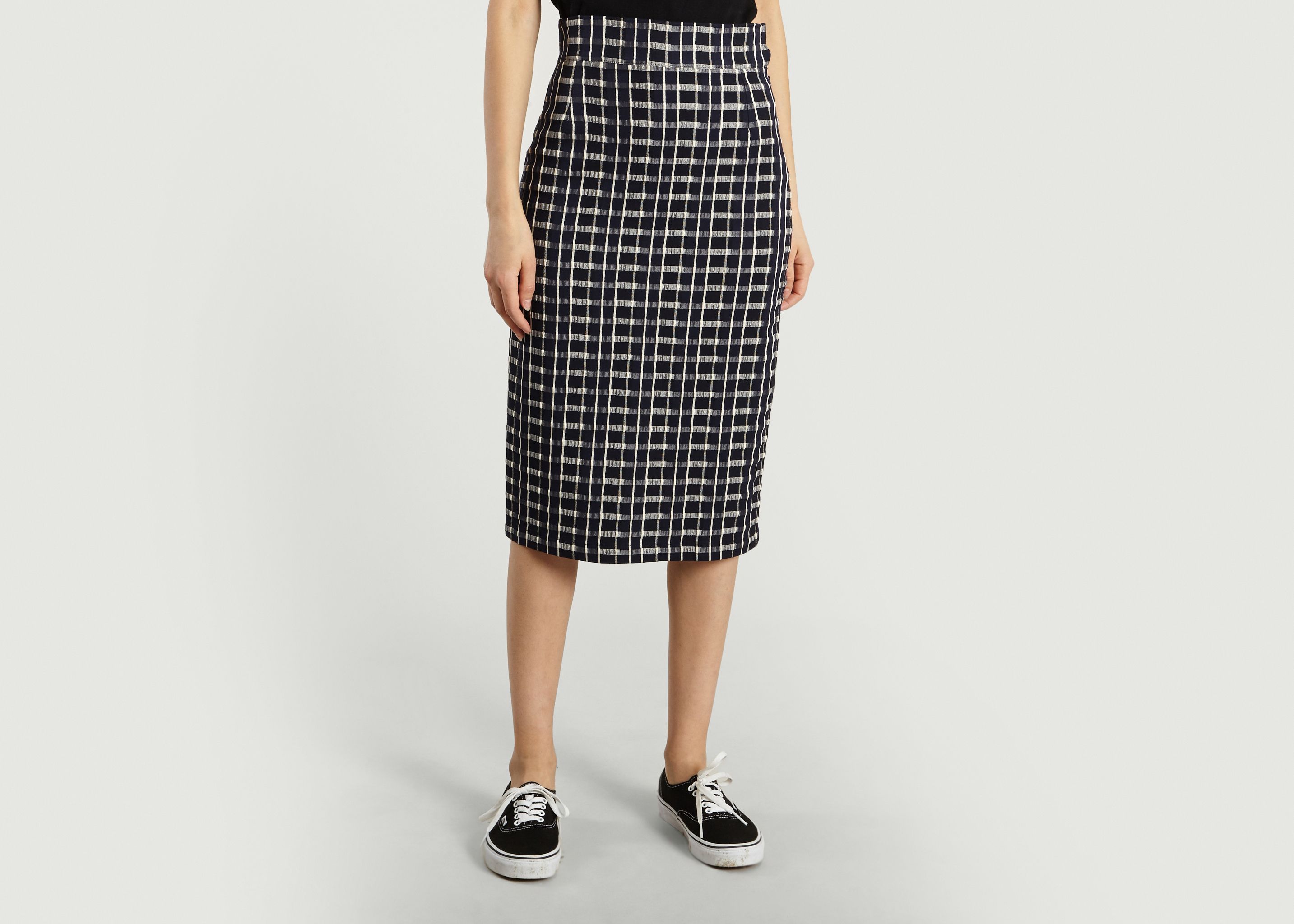 blue chequered skirt