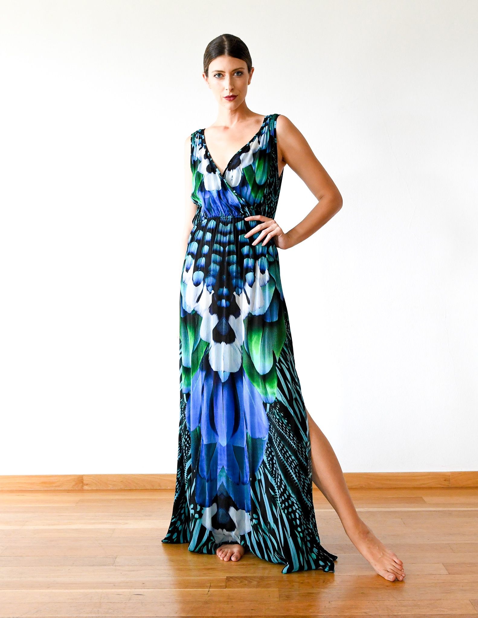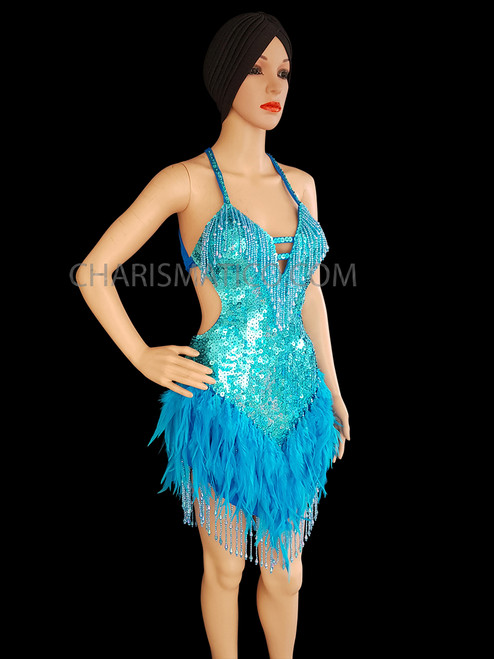 blue feather dress