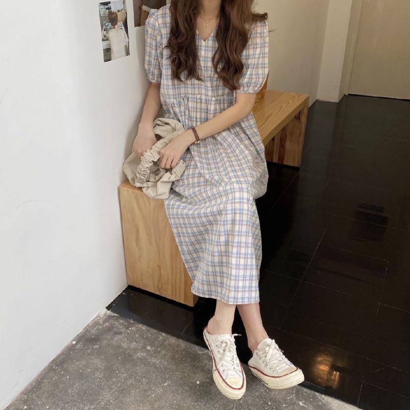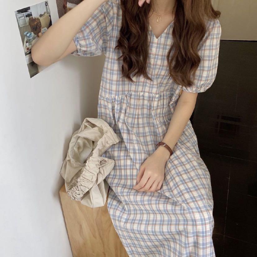 blue gingham maxi dress