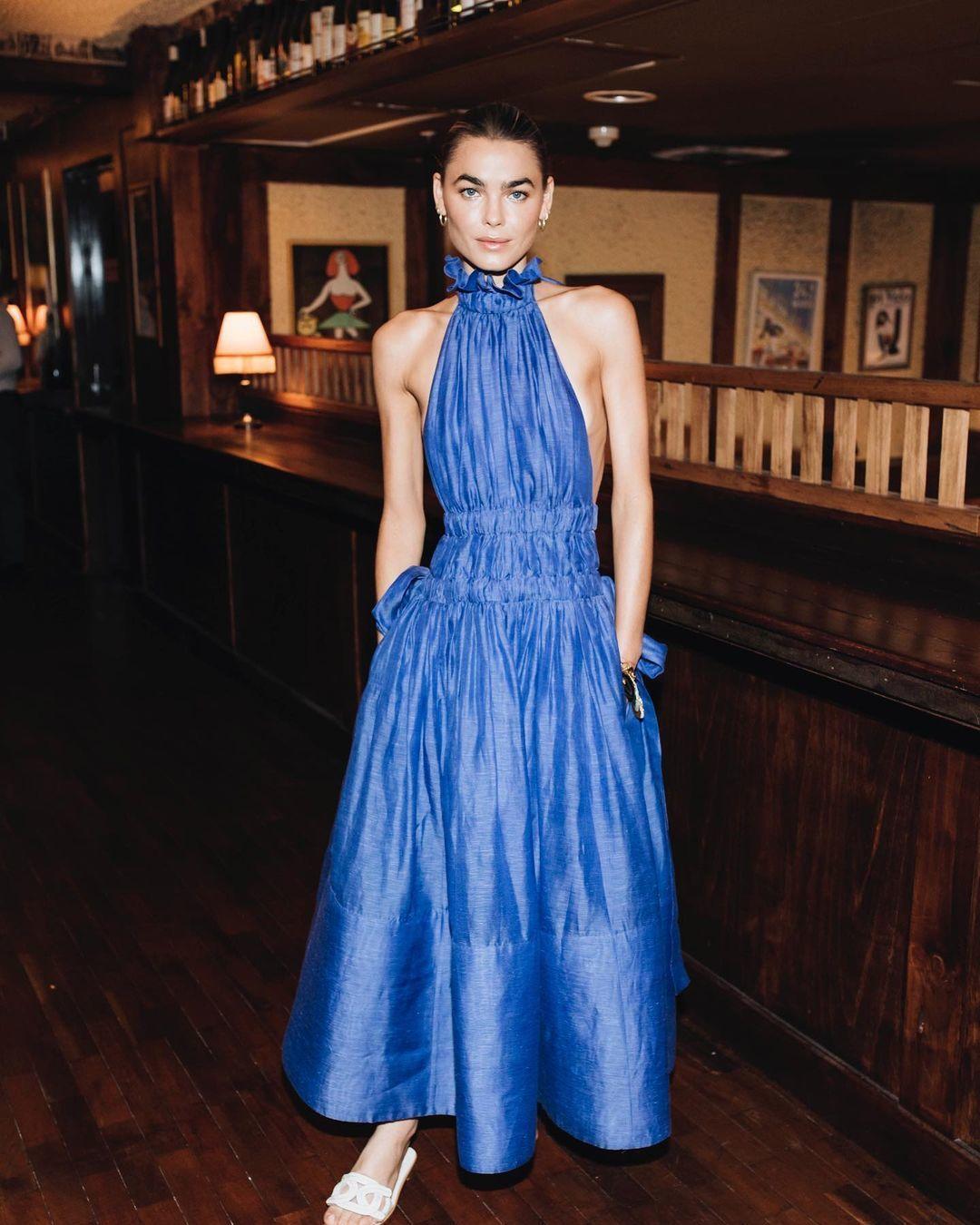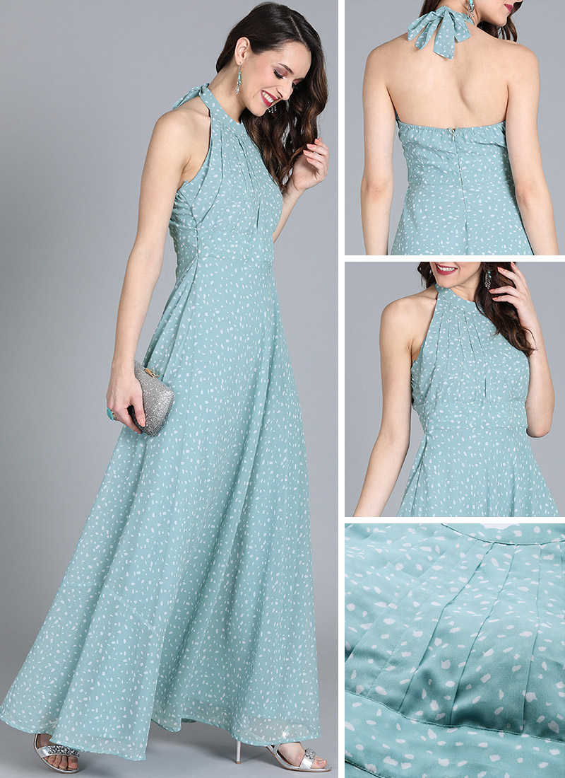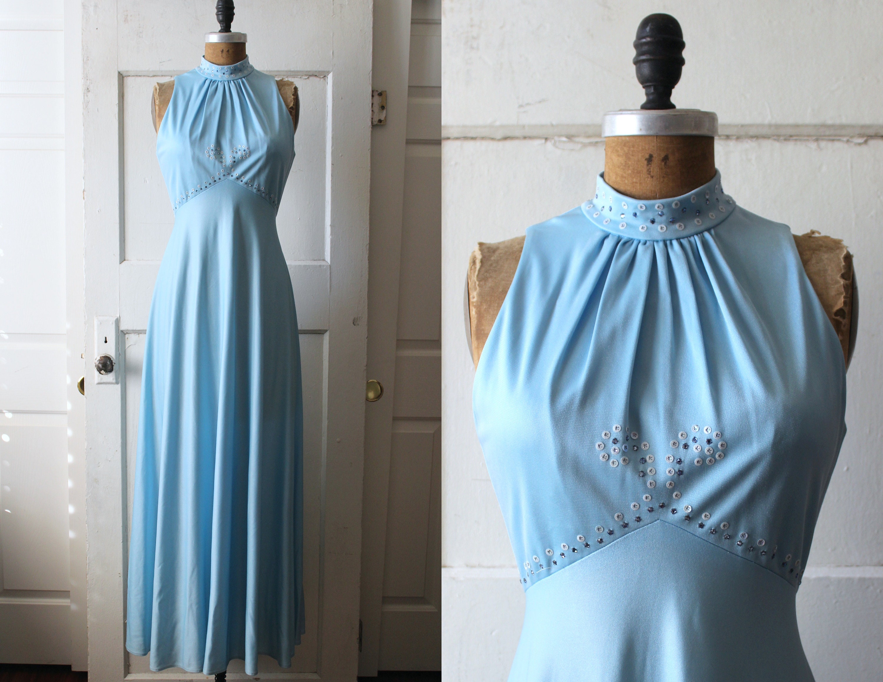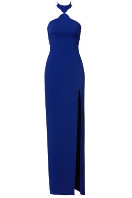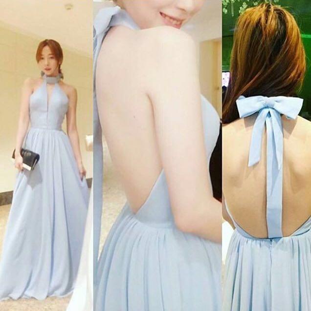 blue halter gown