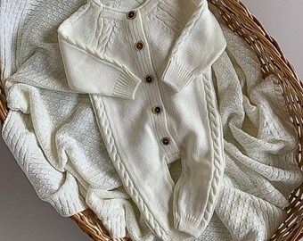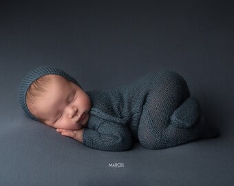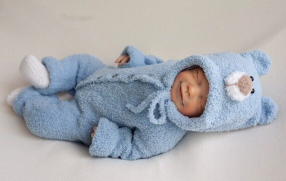 blue knitted baby outfit