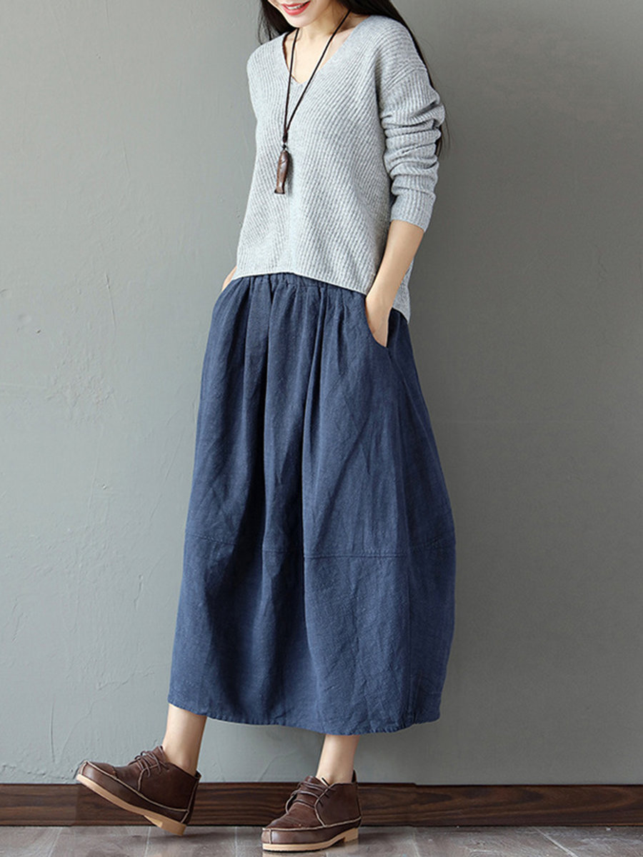 blue linen skirt