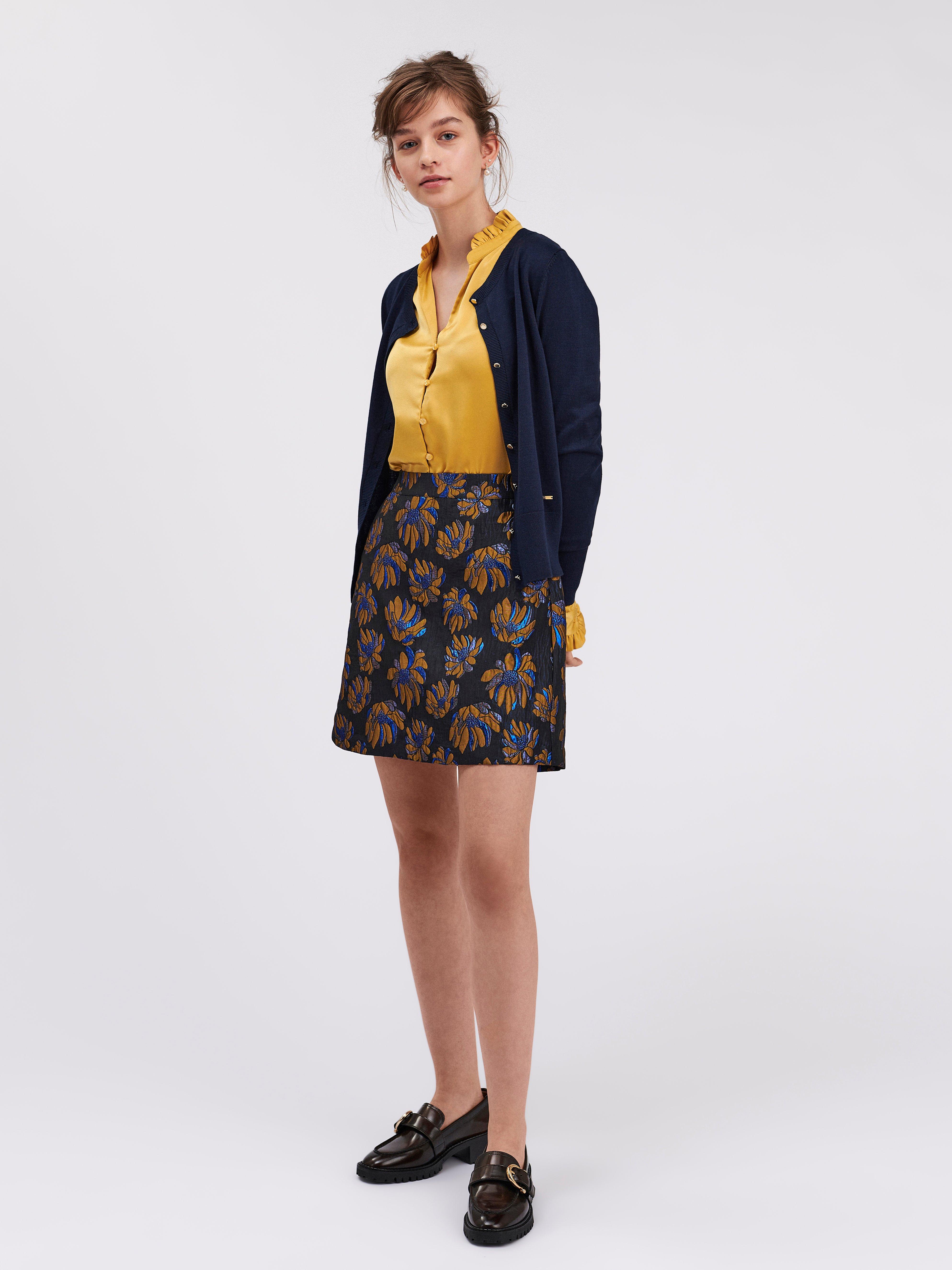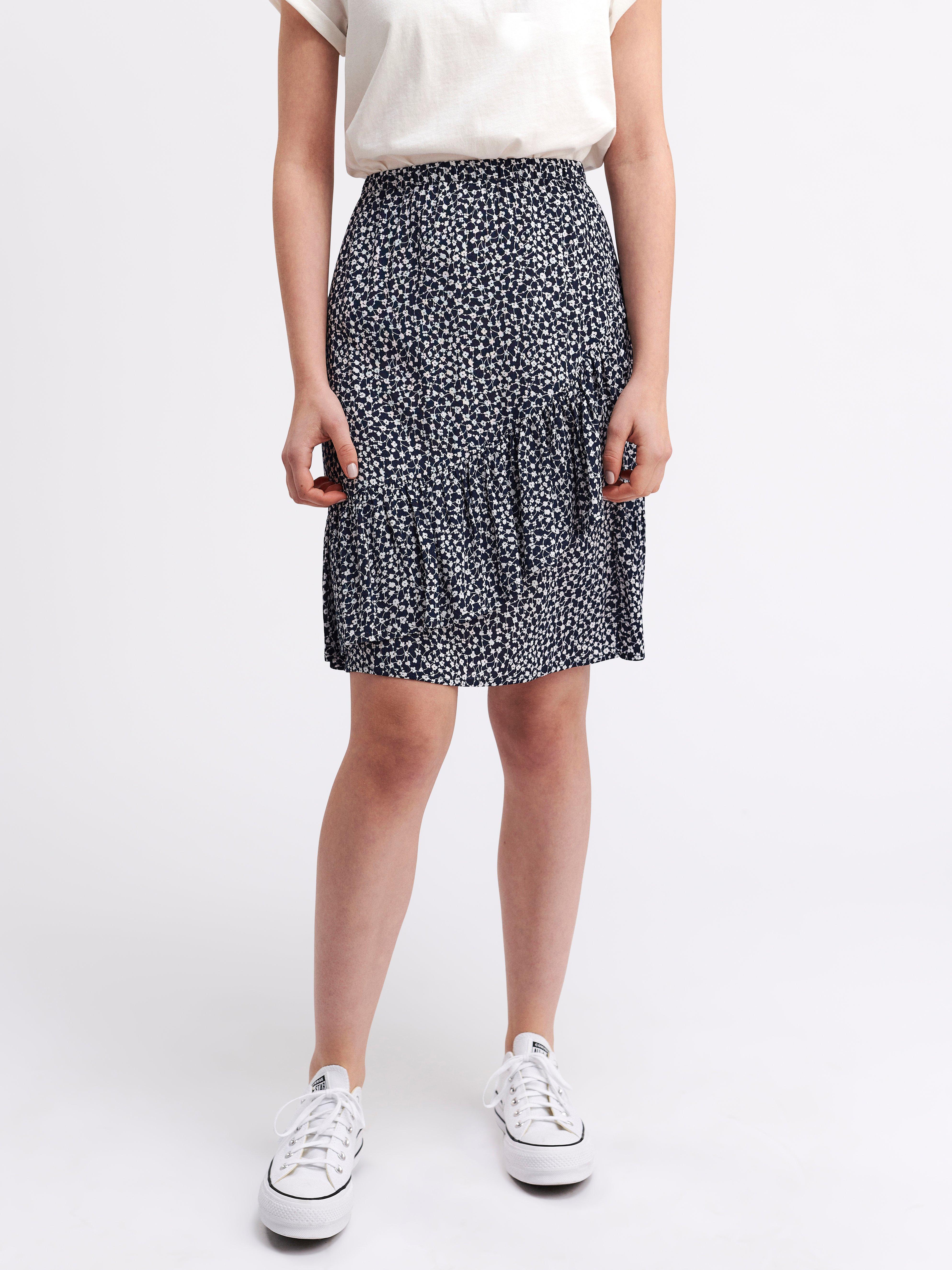 blue patterned skirt