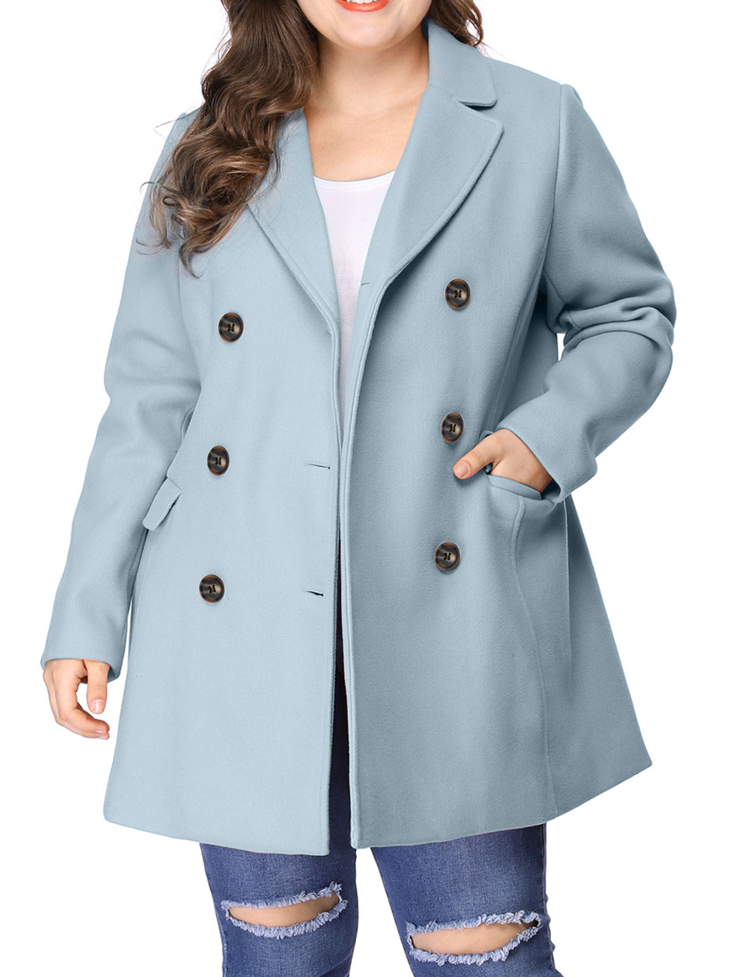 blue plus size coat