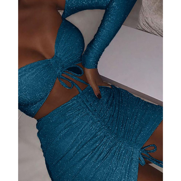 blue sparkly two piece set
