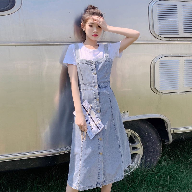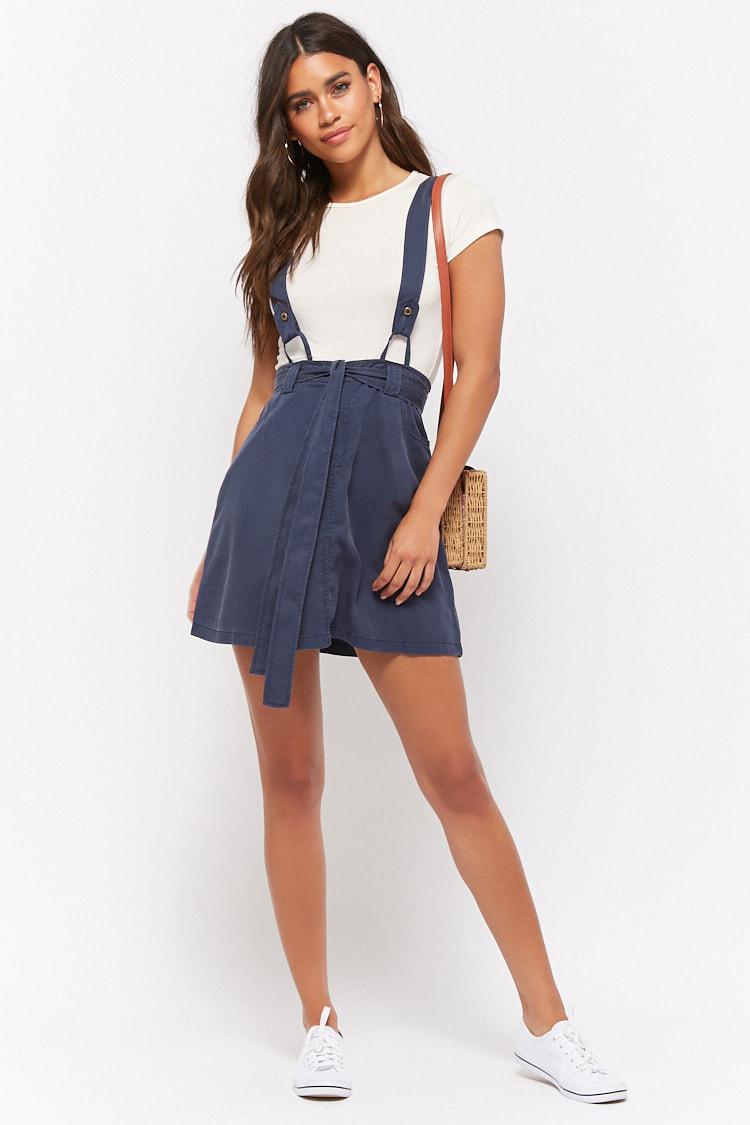 blue suspender skirt