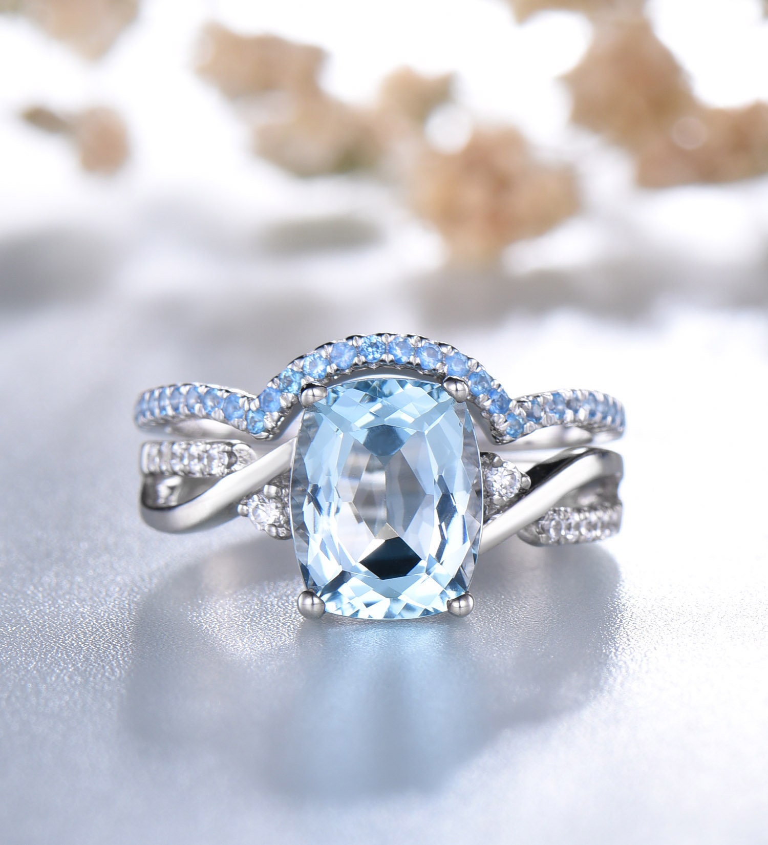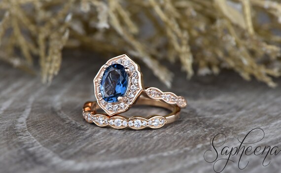 blue topaz wedding ring set